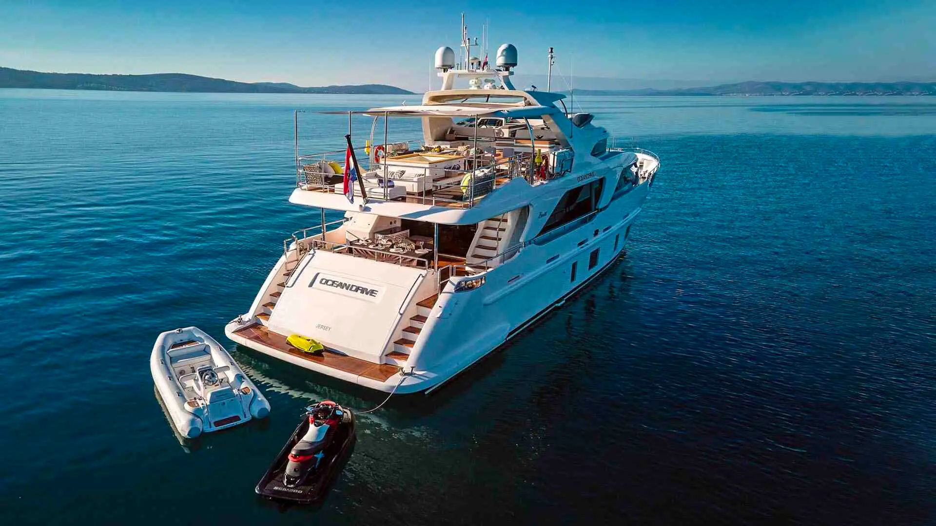 Aboard Ocean Drive, guests have access to an array of entertainment options and water toys, including a Jet Tender Williams 440, jet skis, a seabob, SUPs, snorkeling equipment, and more. Whether seeking relaxation or adventure, Ocean Drive caters to all tastes and interests.