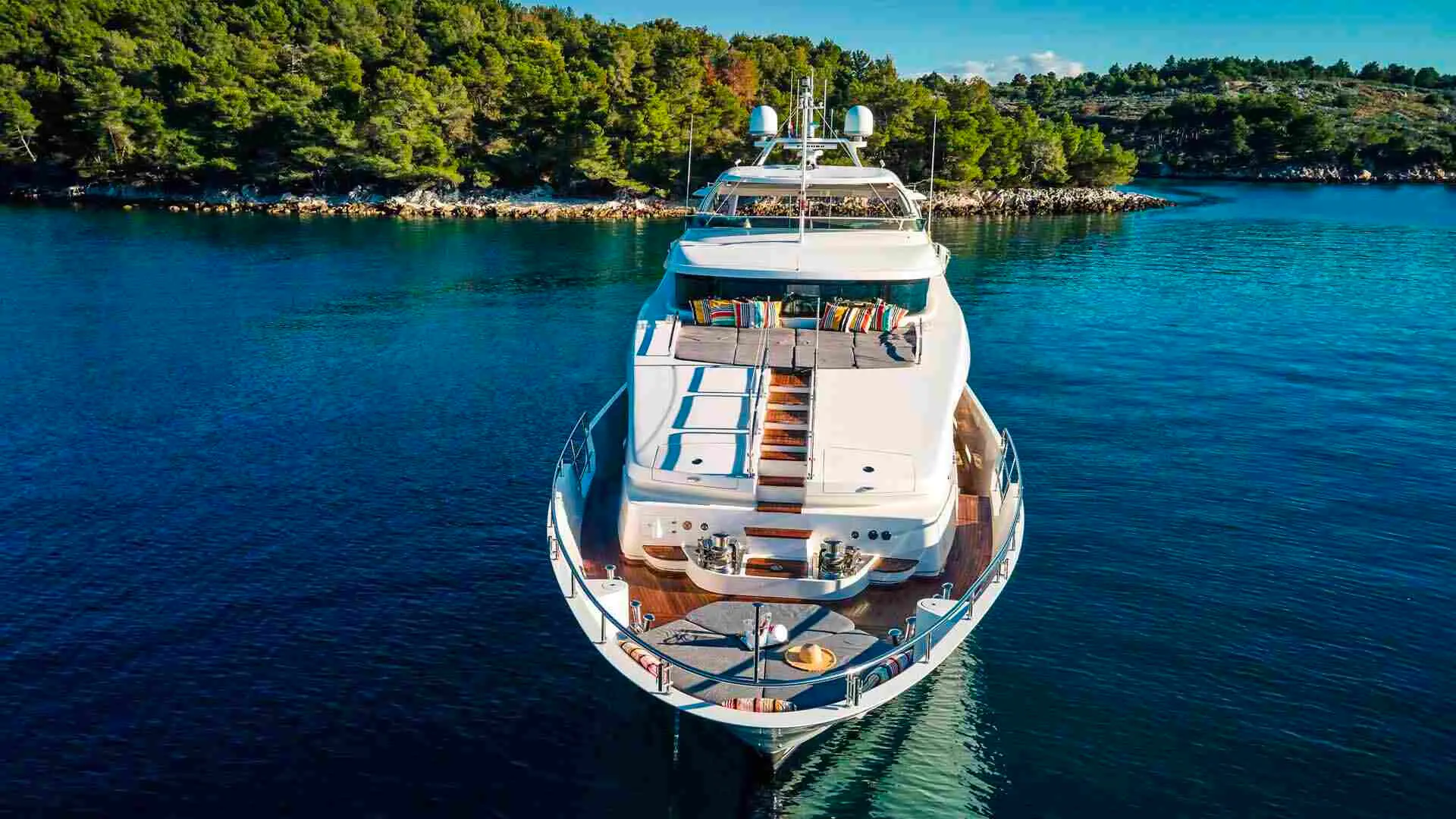 Measuring 28.50 meters in length and with a beam of 7.04 meters, Ocean Drive provides ample space and stability. Powered by twin 965 HP MTU engines, she navigates the Adriatic Sea with grace, offering a cruising speed of 11 knots and ensuring a smooth journey to Croatia's hidden gems.