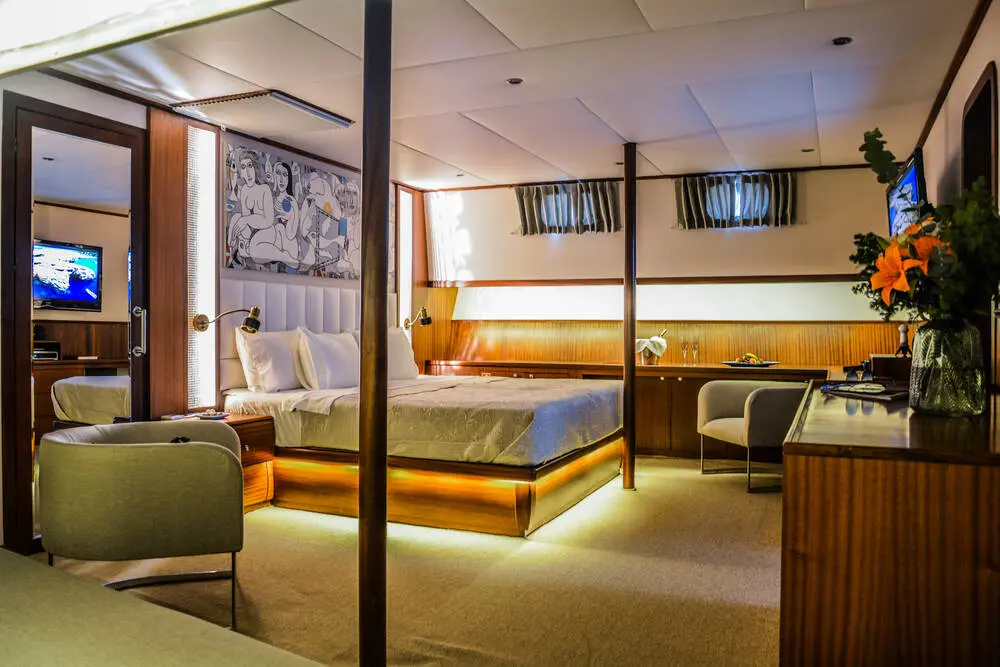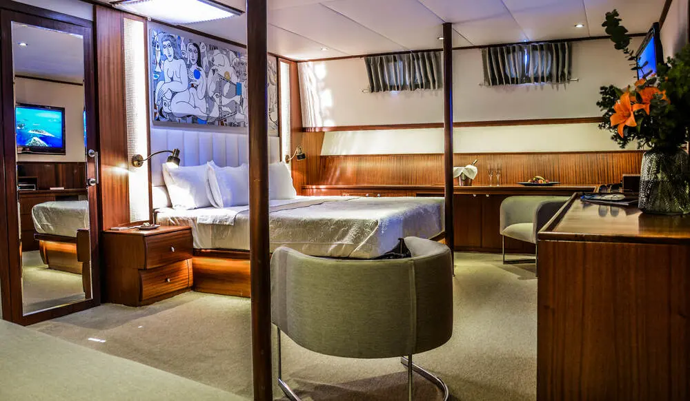 Gulet Papa Joe features 5 luxurious cabins, each designed for maximum comfort and privacy. The ship’s elegant interior design enhances relaxation, offering a peaceful retreat after a day of exploring bays or enjoying water sports.