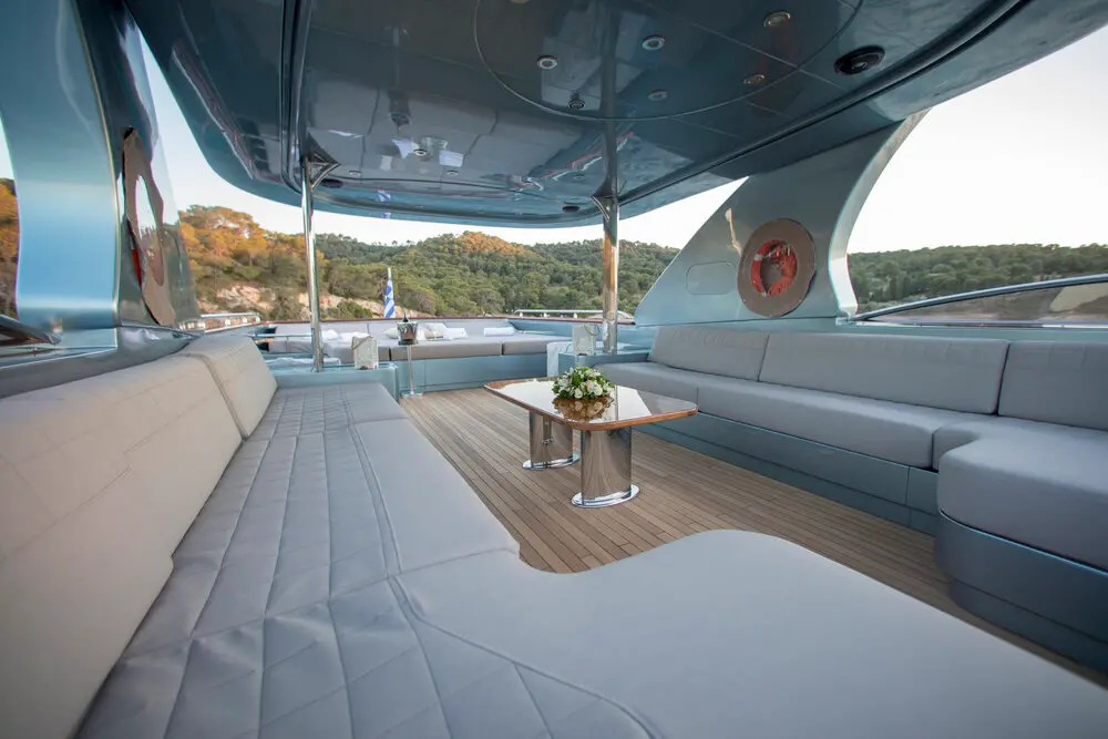 The interior of Princess L exudes warmth and sophistication, with luxurious furnishings and panoramic windows inviting guests to unwind and socialize. The exterior decks offer sunbathing areas, alfresco dining spaces, and a variety of relaxation spots, perfect for enjoying the breathtaking views and Mediterranean sun.
