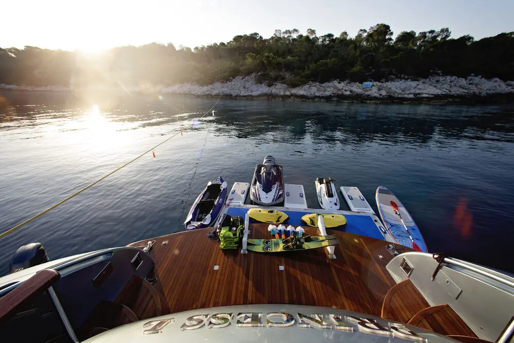Tender ZAR ZF 3 70HP, Jet Ski, 2 x Seabob, Canoe, Banana, 2 x SUP, Water ski equipment, Fishing & Snorkeling Equipment, Swimming Platform, Ipod for controlling the sound system, Playstation, Air Conditioning, Wi- Fi connection on board,