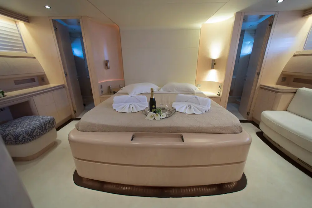 Princess L features one master suite, two VIP cabins, and two twin cabins, each designed for comfort and privacy with en-suite shower boxes, electric toilets, and air conditioning. The yacht's luxurious layout fosters both communal enjoyment and private retreats, making every moment onboard memorable.