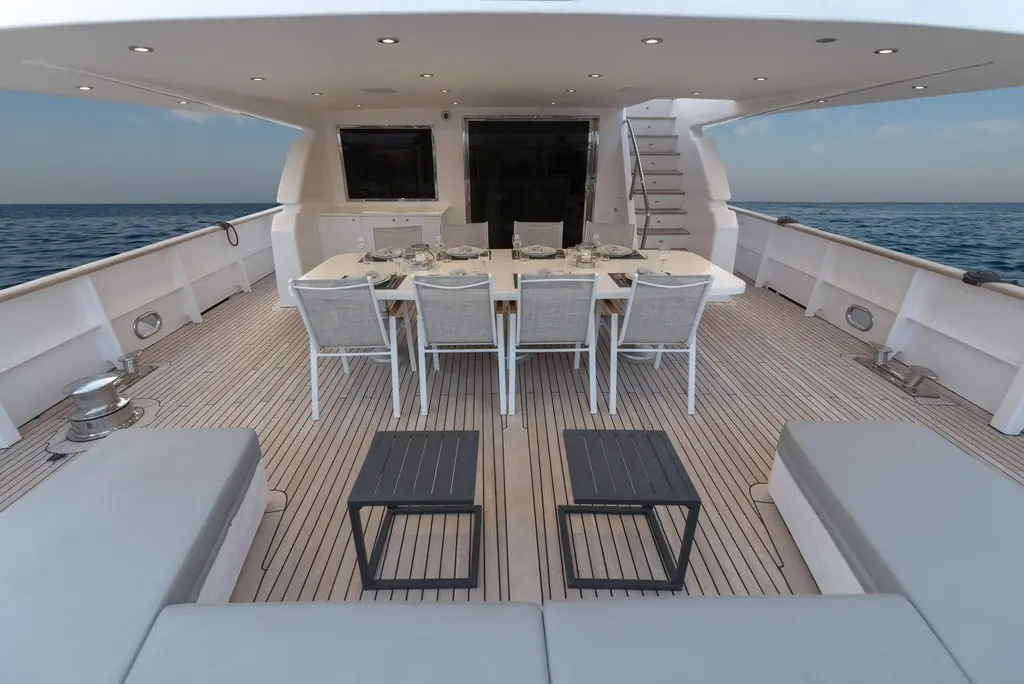 Project Steel stands as a testament to maritime excellence, boasting impressive specifications that ensure a smooth and luxurious journey across the Aegean Sea. With a proud Greek flag waving, this motor yacht's base in Athens positions it perfectly for exploring the myriad of islands scattered across the Greek seas. Measuring 34 meters in length, with a beam of 6.80 meters and a draft of 2.50 meters, its dimensions craft the ideal balance between spacious luxury and navigational ease. The yacht's history, marked by a build year of 1993 and a comprehensive refit in 2020, tells a story of enduring elegance and modern enhancements.