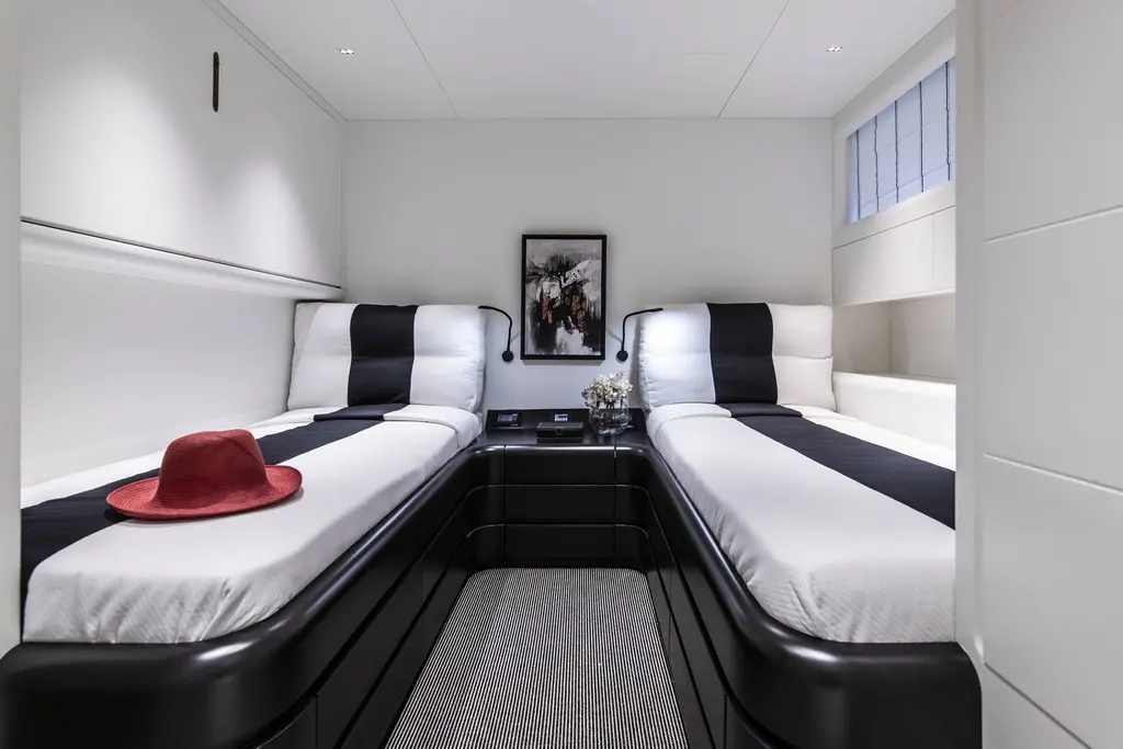 Accommodating up to 12 guests, Project Steel features an array of cabin arrangements designed to cater to diverse preferences and needs. The yacht houses 1 master, 2 double, and 2 triple cabins, each equipped with shower boxes, electric toilets, and air conditioning to ensure a comfortable stay throughout the journey. These accommodations reflect a commitment to luxury and privacy, ensuring that every moment spent onboard is one of relaxation and tranquility.