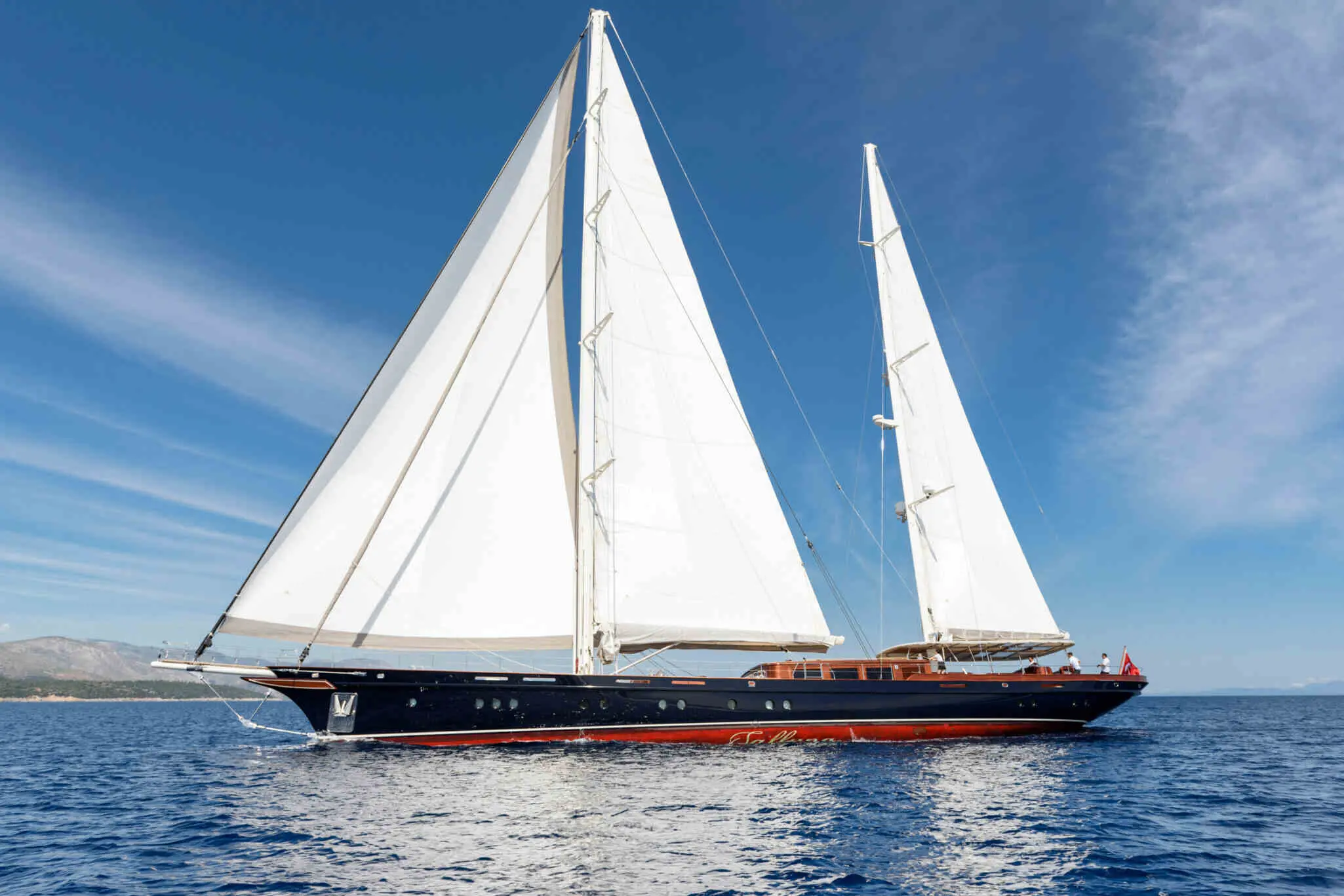 The Gulet Sallyna is a traditional Turkish gulet, known for its robust build and spacious layout, ideal for leisurely cruises. The yacht proudly sails under the Turkish flag, symbolizing its heritage and connection to the rich maritime culture of Turkey. Bodrum serves as the home port for Gulet Sallyna, a renowned hub for yachting enthusiasts.