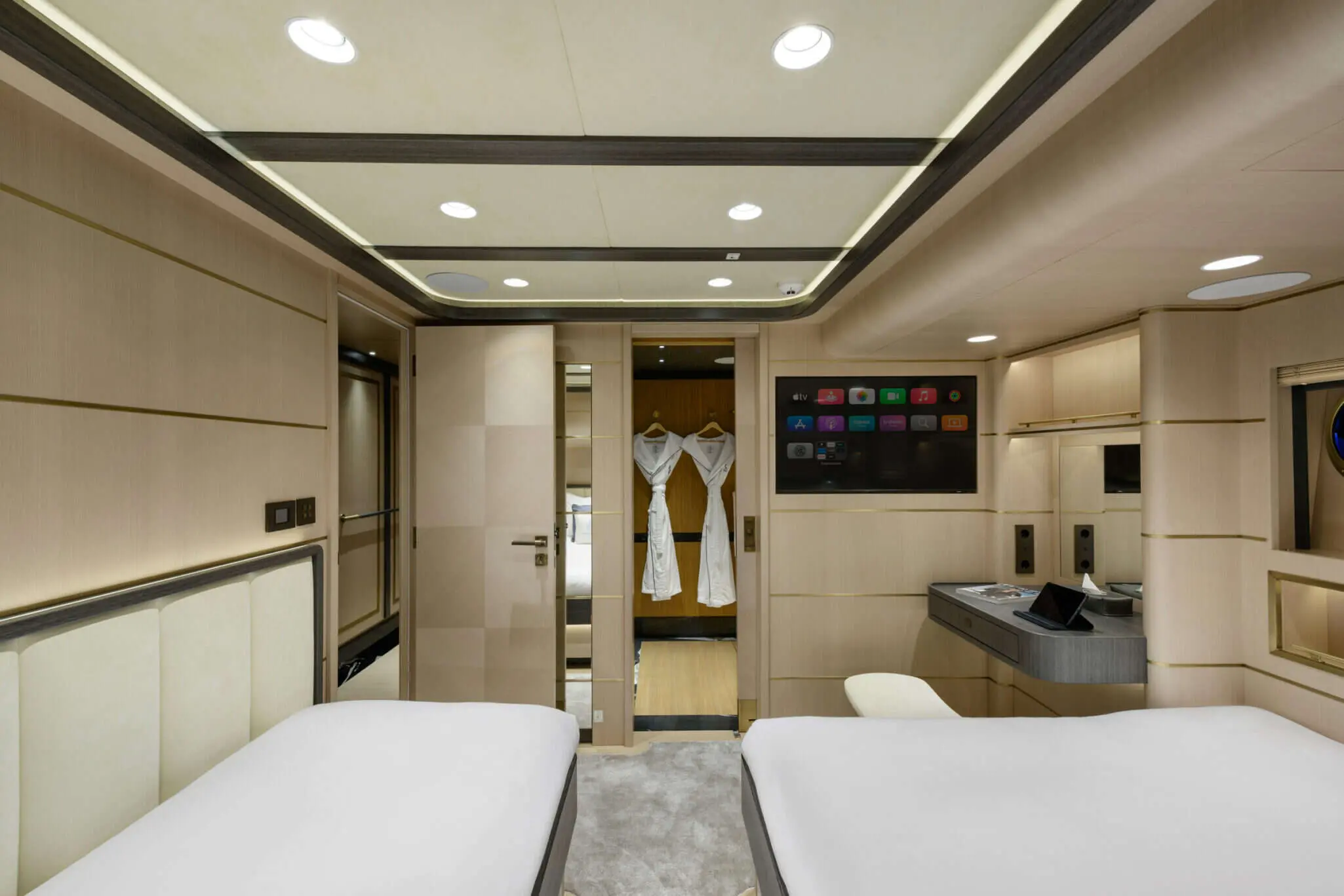 Each cabin is equipped with modern amenities, ensuring comfort and convenience for all guests. All cabins feature private bathrooms and toilettes, designed with luxury and functionality in mind. Air conditioning is available throughout the yacht, providing a comfortable environment regardless of the weather.