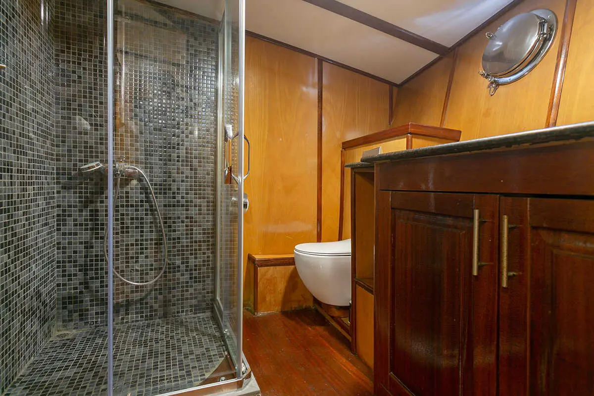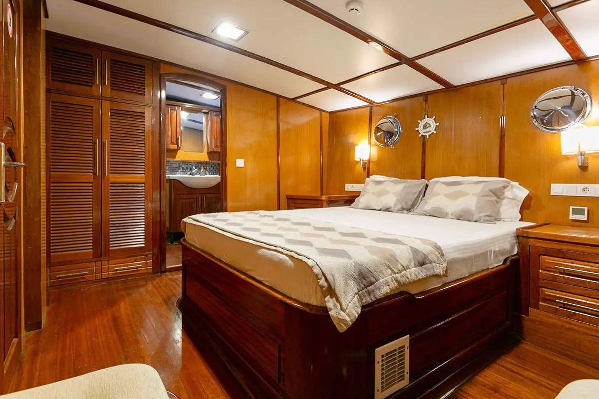 Designed for comfort and luxury, Gulet Saraylı 1 accommodates up to 12 guests in 5 beautifully furnished cabins. The interior design combines traditional Turkish craftsmanship with modern luxury, offering a warm and inviting atmosphere for relaxation.