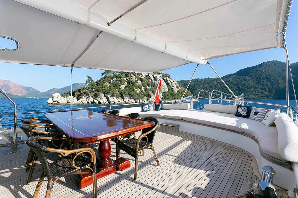 The Gulet Saraylı 1 is a premium 35-meter Turkish gulet that offers luxurious accommodation, modern amenities, and an experienced crew for an unforgettable yacht charter experience. Based in Marmaris, this stunning vessel is perfect for exploring the Turkish Riviera, sailing along breathtaking coastlines and hidden bays.