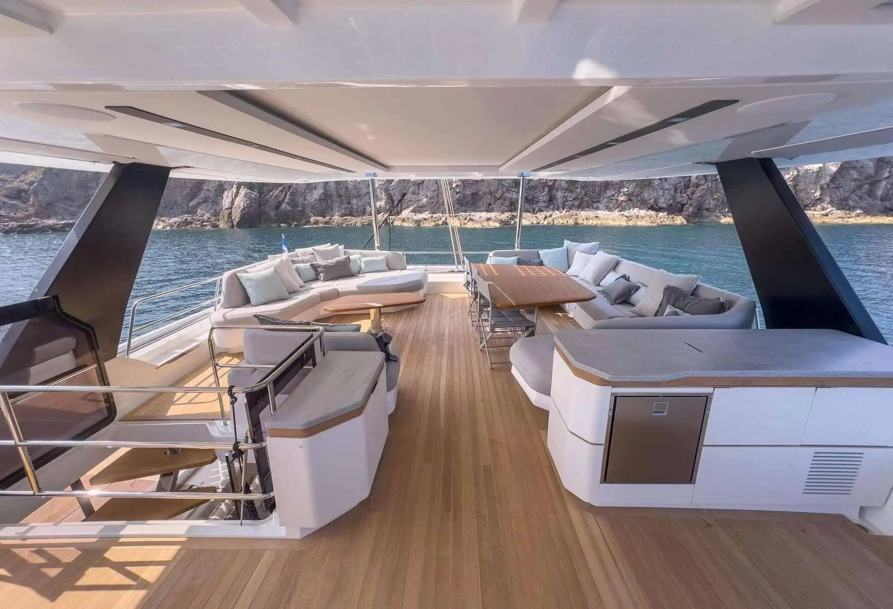 The Catamaran Fountaine Pajot 80 Serenissima III is a brand-new 2024 luxury yacht based in Athens, Greece, blending performance with sophistication. Designed for an opulent yachting experience, Serenissima III offers spacious cabins, a professional five-member crew, and a wide array of entertainment options, ideal for cruising in style around the Greek islands.