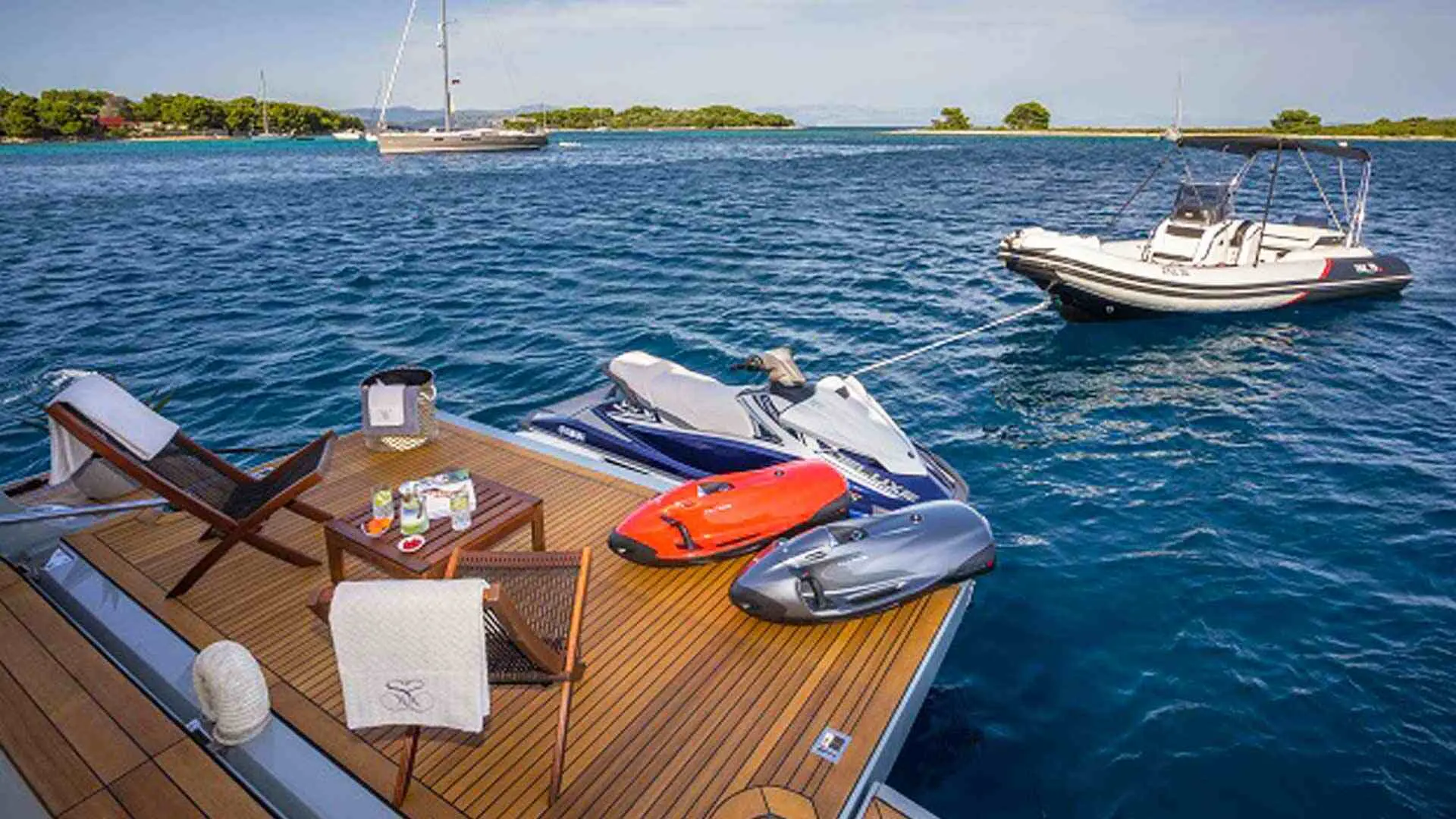 Tender BSC 70 Sport with Yamaha 200 HP, Yamaha Jet Ski, 2x Seabob F5, 2x Sea Doo Scooter, Inflamable water fun (doughnut, ...), Snorkling, Waterskiis, Satellite TV, Wi-Fi, Air Conditioning