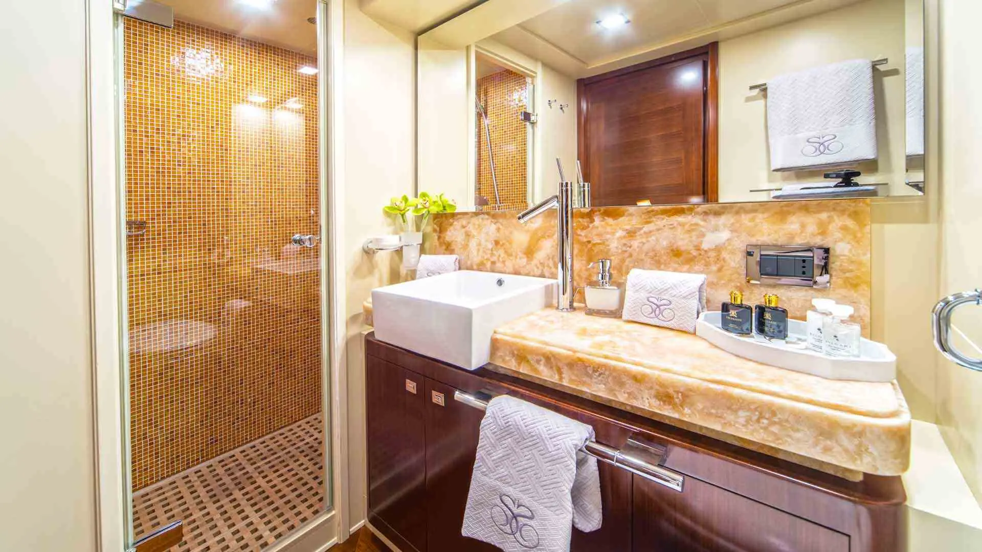 Accommodating up to 8 guests, Seventh Sense features a lavish selection of cabins, including one VIP, one Master, one Double, and two Twin cabins, each a haven of comfort and elegance. The en-suite shower facilities, electric toilettes, and full cabin air conditioning create a private retreat of luxury, offering rest and rejuvenation after a day of adventure.
