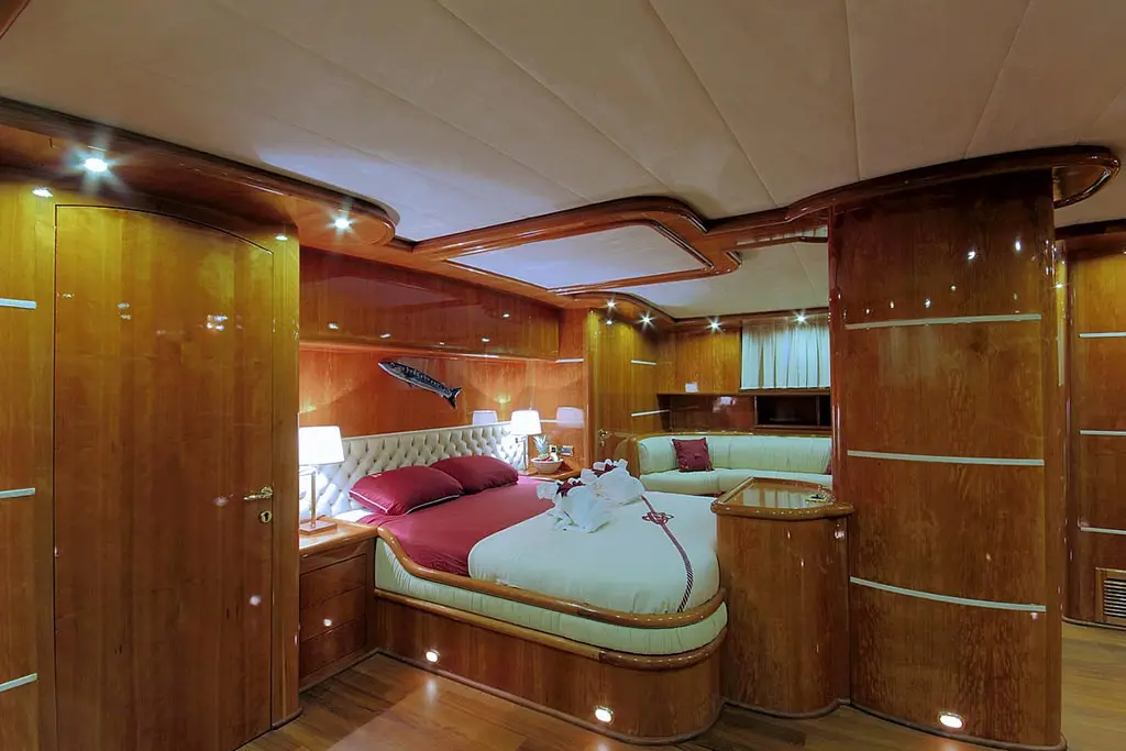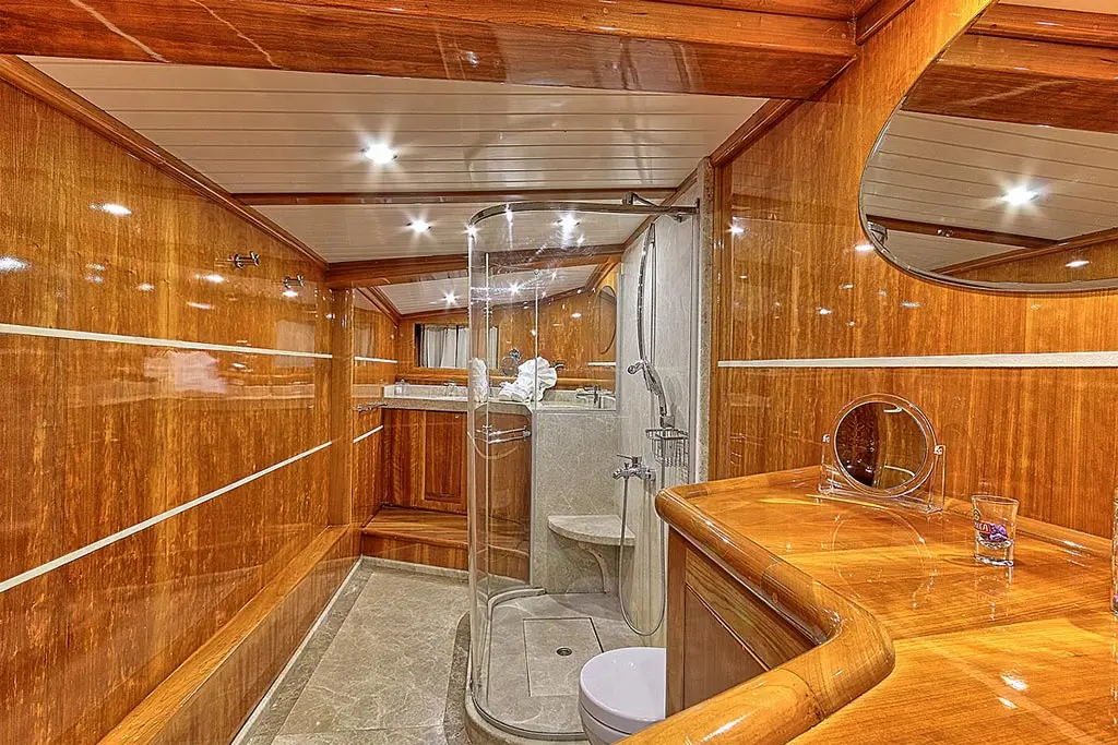 Silver Moon, proudly flying the Turkish flag, offers a majestic presence on the water. From the bustling port of Bodrum, it extends an invitation to explore the Turkish Coast with a length of 36.30 meters and a beam of 7.75 meters. The gulet's draft of 3.70 meters allows for exploration of secluded coves and beaches, inaccessible to larger vessels. Powered by dual 550 hp CAT engines and equipped with silent generators, Silver Moon cruises smoothly at 13 knots, ensuring a journey that is as serene as it is swift.