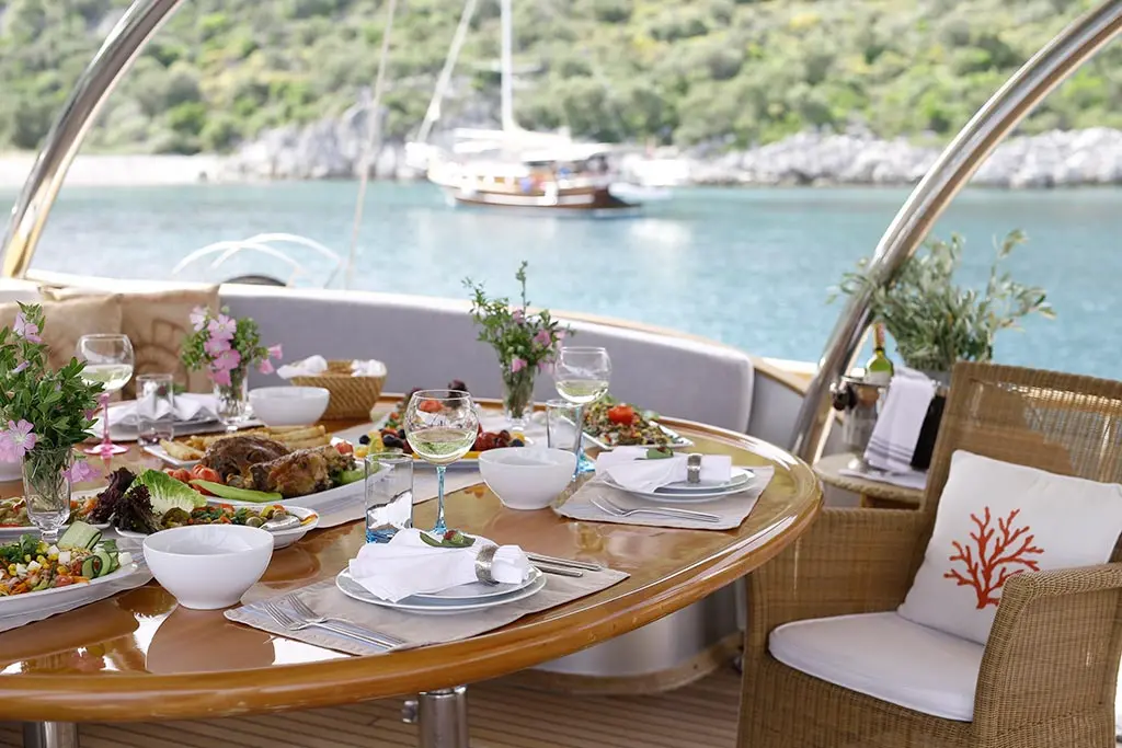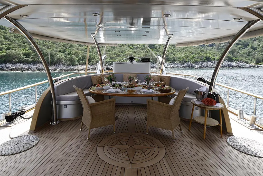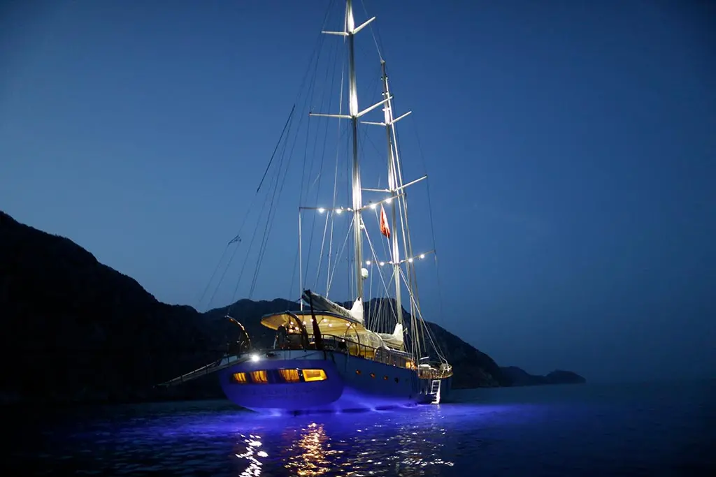 Onboard Silver Moon, entertainment and leisure blend seamlessly with the rhythm of the sea. From the indoor restaurant and TV salon to the music system and an array of water toys including a canoe, jet ski, banana, ringo, paddle board, wake board, and water ski, connectivity and entertainment are at your fingertips. The yacht also offers snorkeling gear for guests to explore the underwater wonders of the Turkish coast. Sailing aboard Silver Moon opens up a world of discovery, with itineraries that weave through the storied landscapes of the Turkish coast. Each destination offers a unique blend of history, culture, and natural beauty, from the sun-kissed beaches to ancient ruins whispering tales of yore.