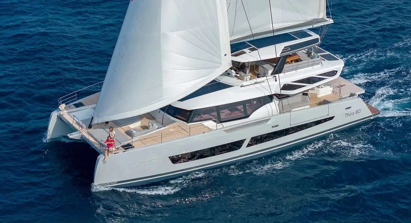 The Thira 80 Sol Madinina is a state-of-the-art 2025 luxury catamaran, delivering an exceptional sailing experience for those who demand style, comfort, and adventure. Designed for private yacht charters in Greece, this vessel offers an opulent onboard experience, a dedicated five-member crew, and an unparalleled selection of water sports and leisure activities.