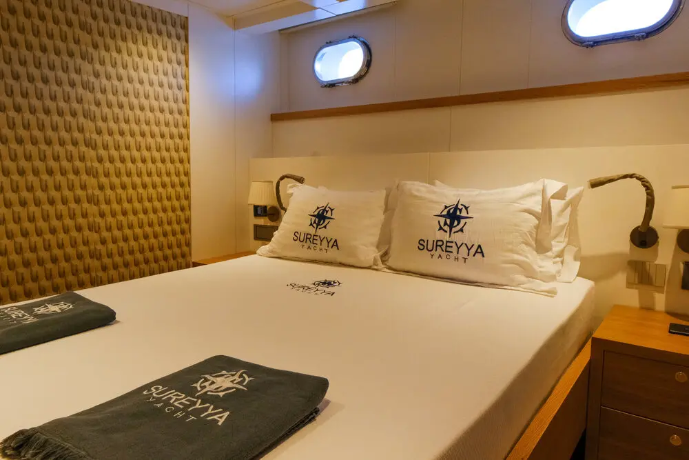 Sureyya offers luxurious accommodations for up to 12 guests. Each cabin is equipped with ensuite bathrooms, air conditioning, and premium furnishings, ensuring a relaxing retreat after a day of exploration. Sureyya’s dedicated crew of seven, including the captain, ensures a personalized and seamless journey. From preparing gourmet meals to organizing water activities, the crew is committed to making every moment aboard exceptional.