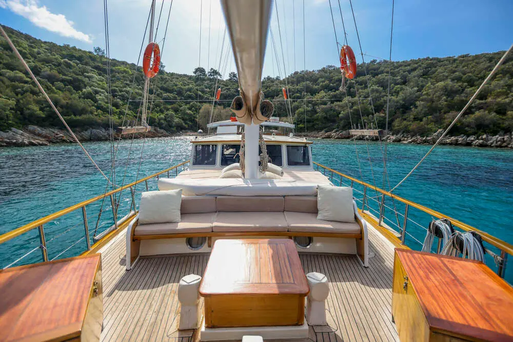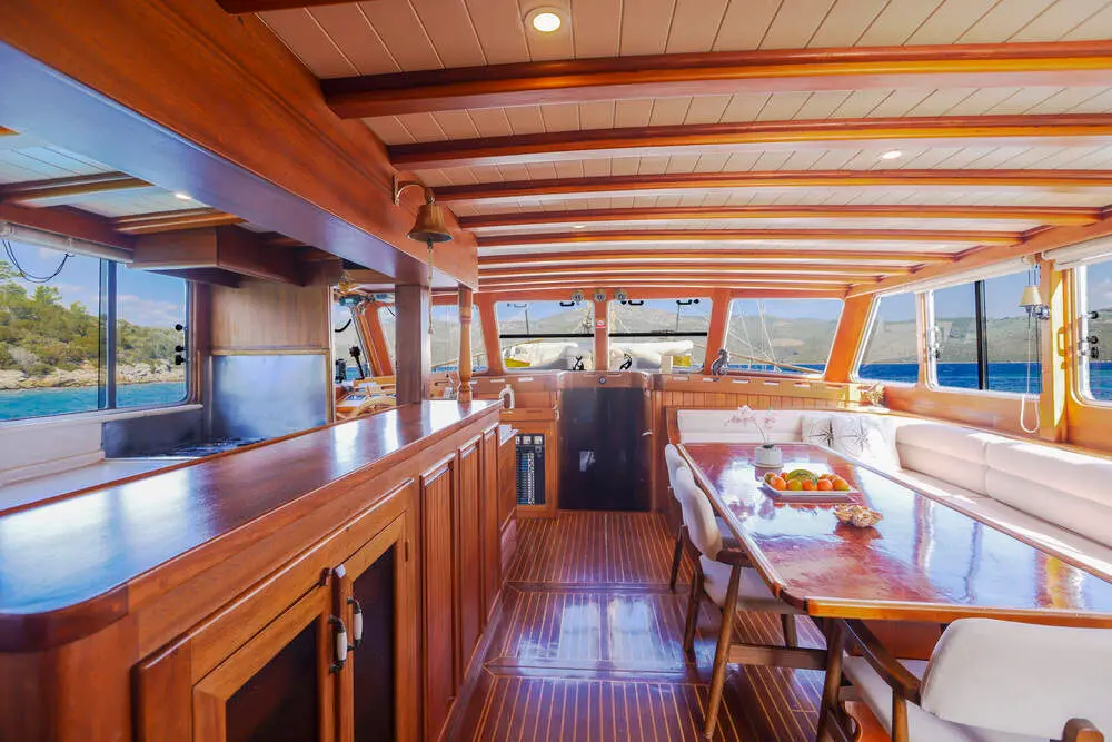 Tufan V, a charming motor sailor flagged under Turkey, serves as an intimate getaway for those looking to navigate the calm waters of Bodrum. With a length of 23 meters and a beam of 6 meters, it boasts a comfortable and stable sail. Refitted in 2016, Tufan V combines traditional design with modern enhancements for optimal performance and guest comfort.