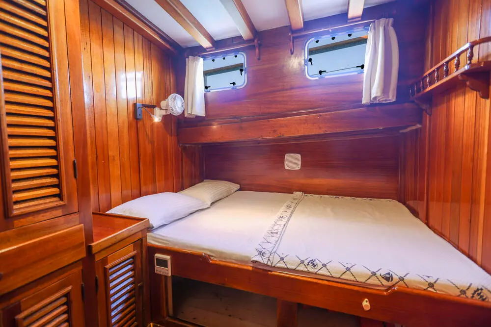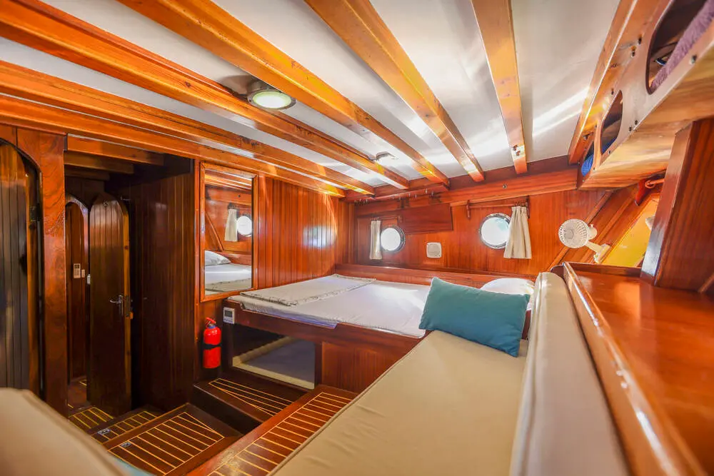 Offering five well-appointed cabins, including two master and three double cabins, Tufan V is designed to host up to 10 guests in absolute comfort. Each cabin is equipped with home-type toilettes, shower boxes, and air conditioning, ensuring a restful retreat after a day full of adventures.