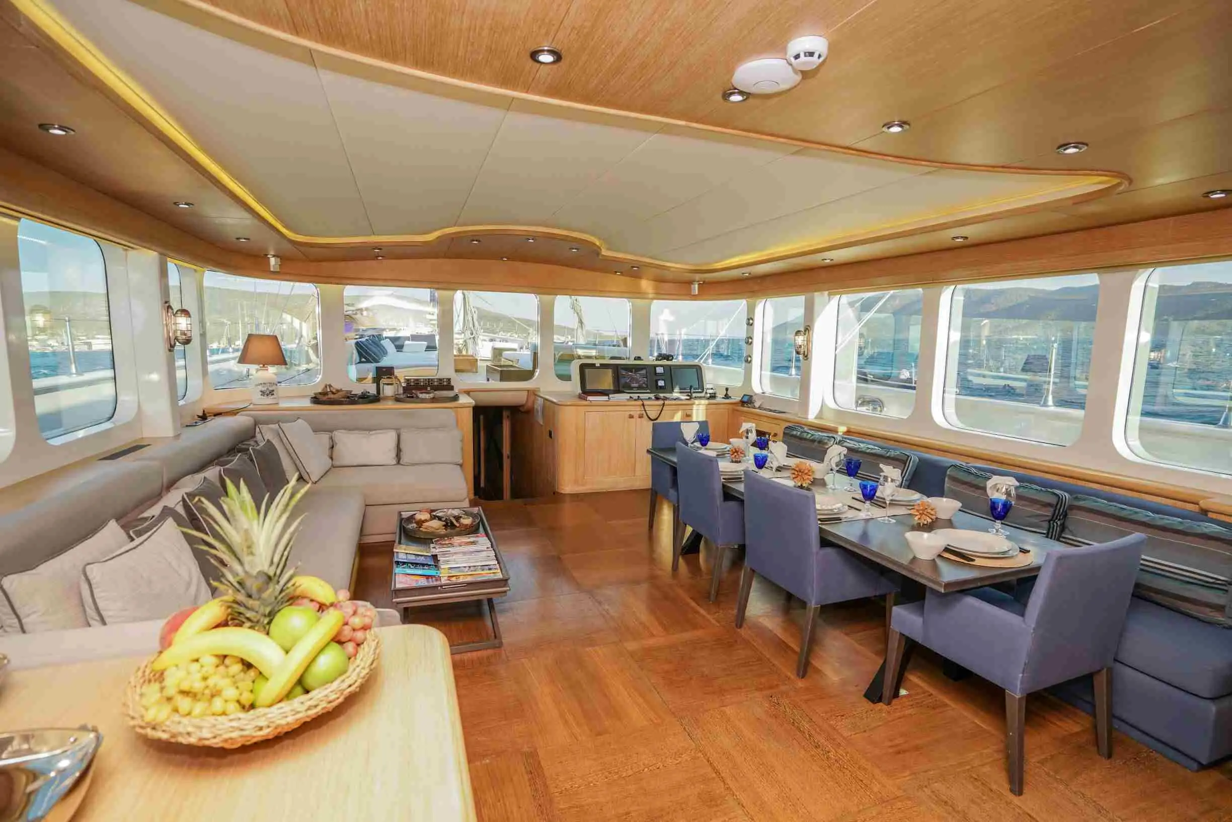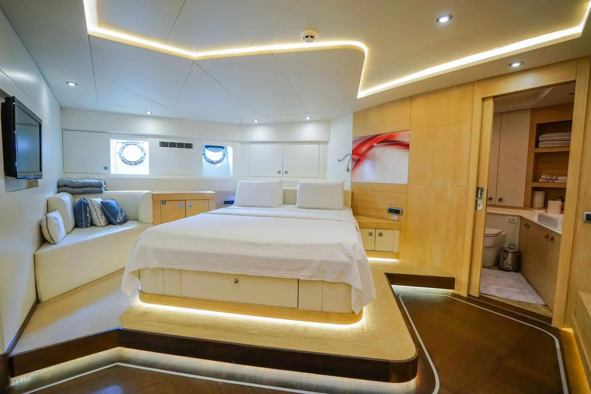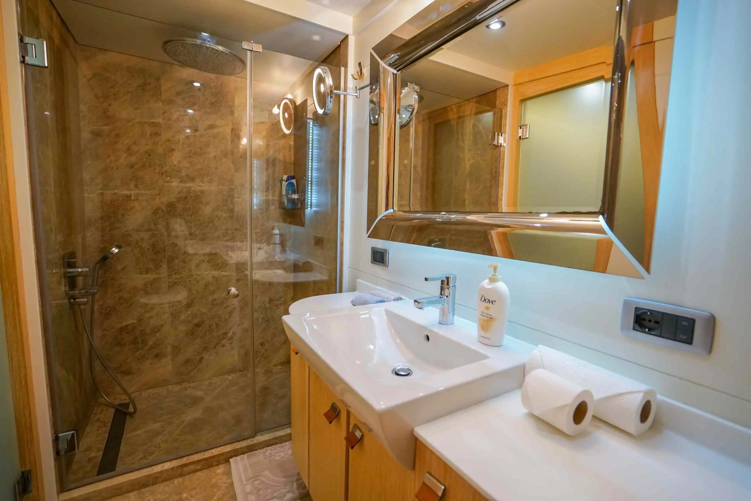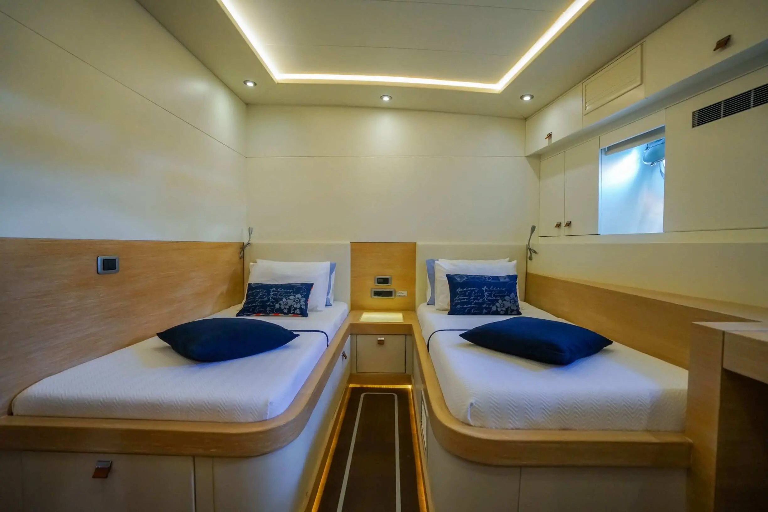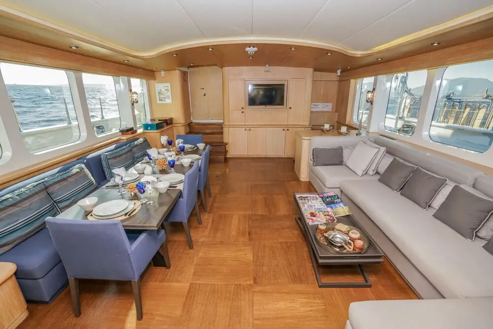 The yacht offers 5 spacious cabins—3 double and 2 twin—ensuring ultimate comfort for up to 10 guests. Each cabin is elegantly designed and features. With a dedicated 6-member crew, including a captain, chef, and service staff, guests experience impeccable hospitality. The crew specializes in creating tailored itineraries and offering personalized services to match every guest's preferences.
