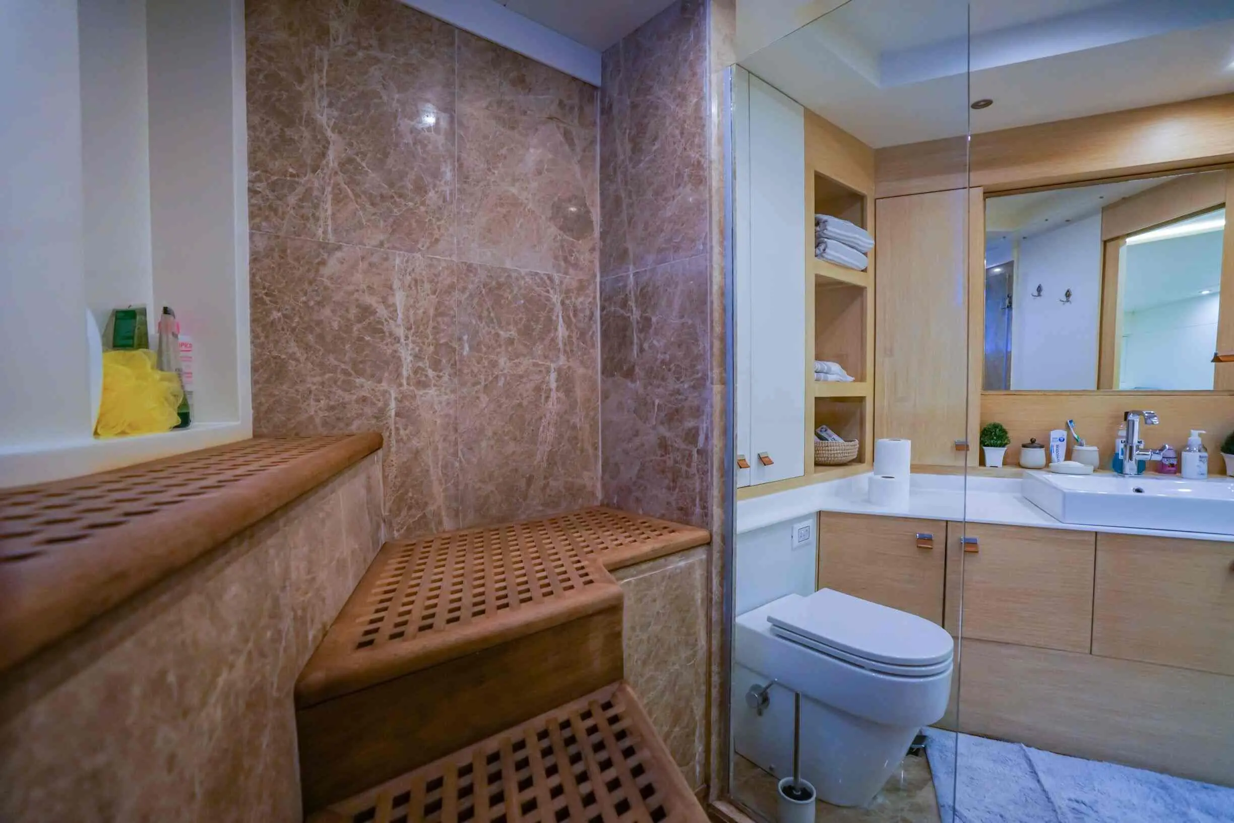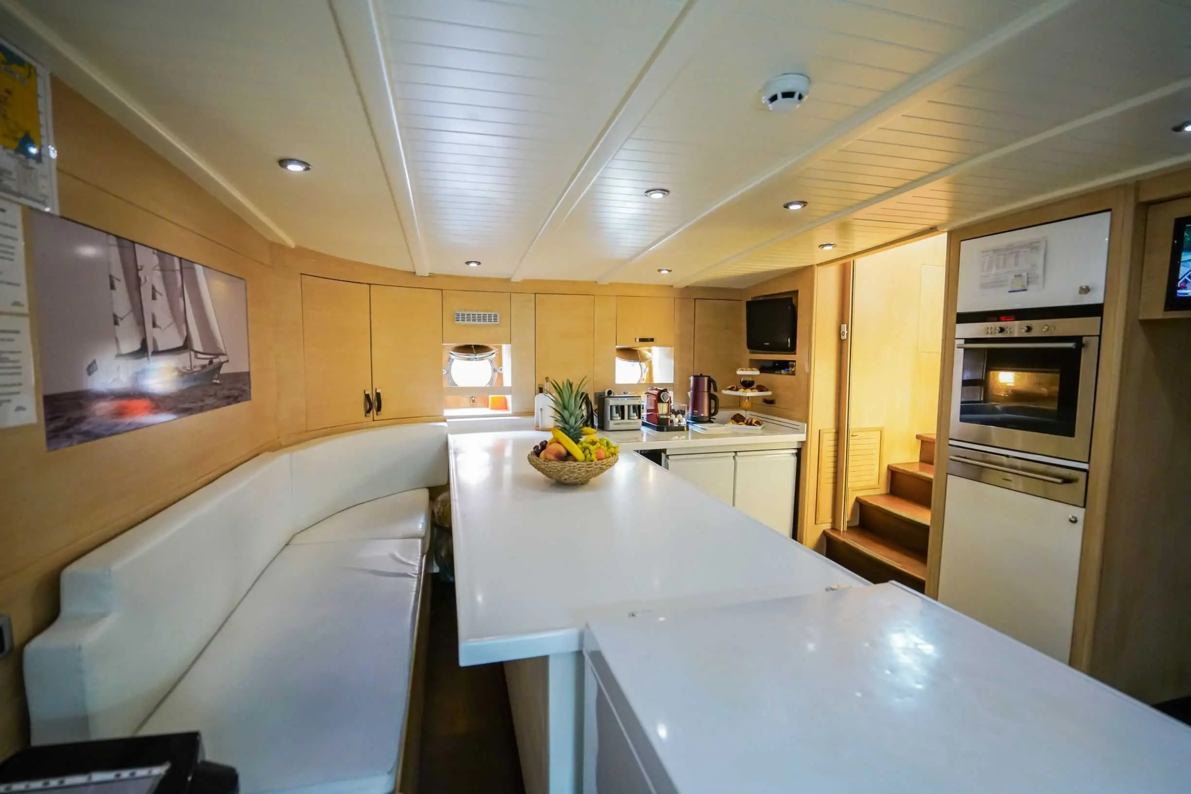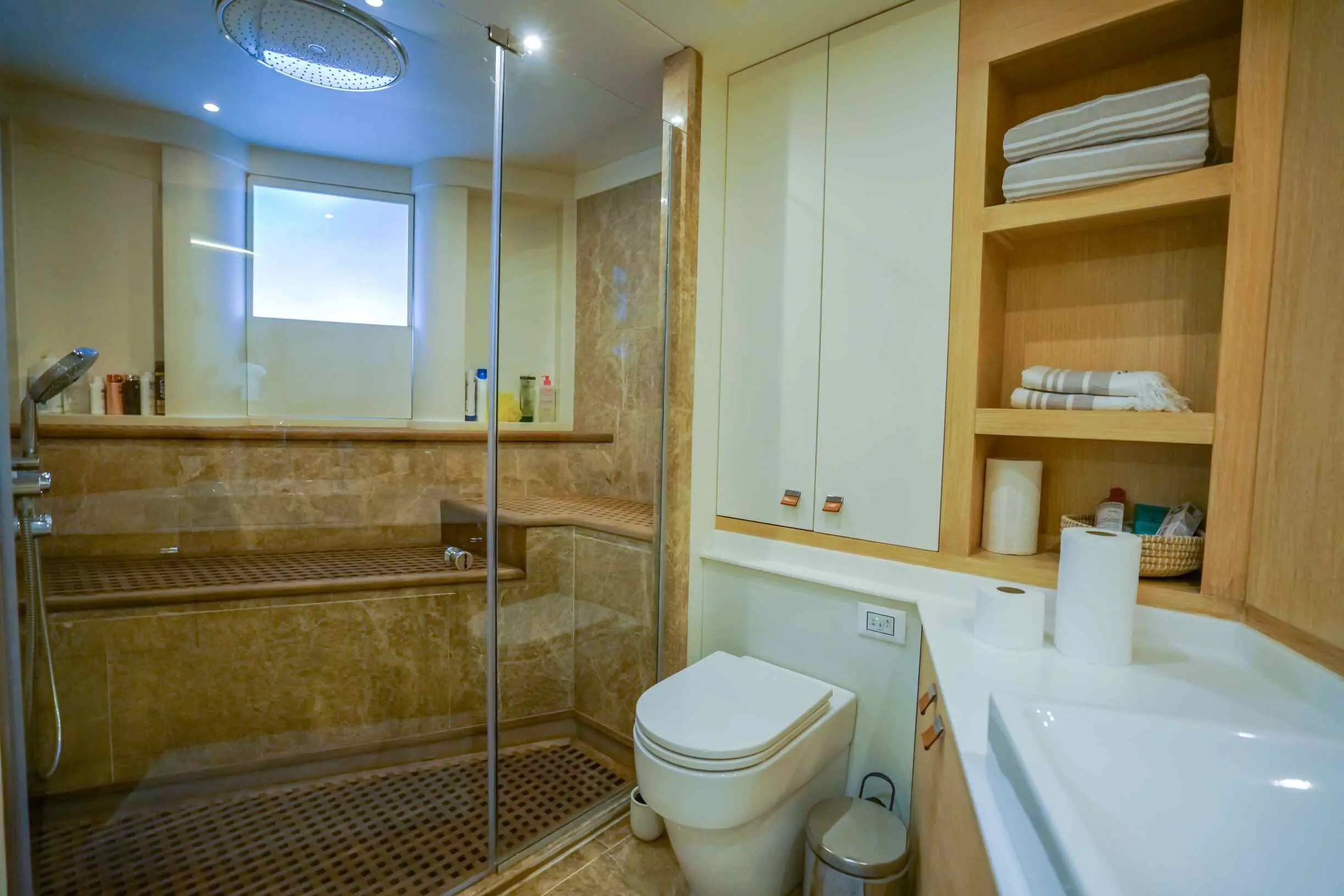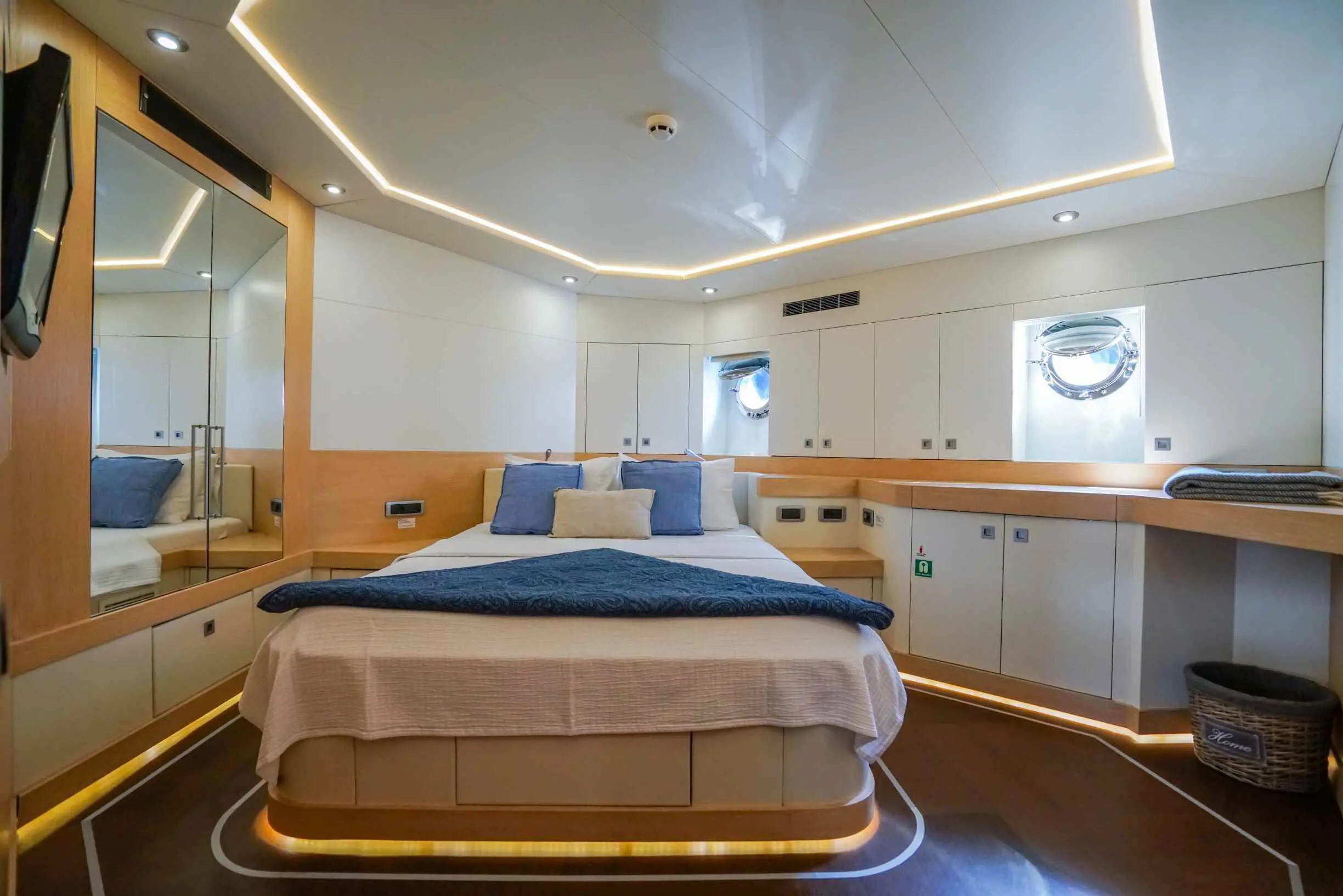 The yacht offers 5 spacious cabins—3 double and 2 twin—ensuring ultimate comfort for up to 10 guests. Each cabin is elegantly designed and features. With a dedicated 6-member crew, including a captain, chef, and service staff, guests experience impeccable hospitality. The crew specializes in creating tailored itineraries and offering personalized services to match every guest's preferences.
