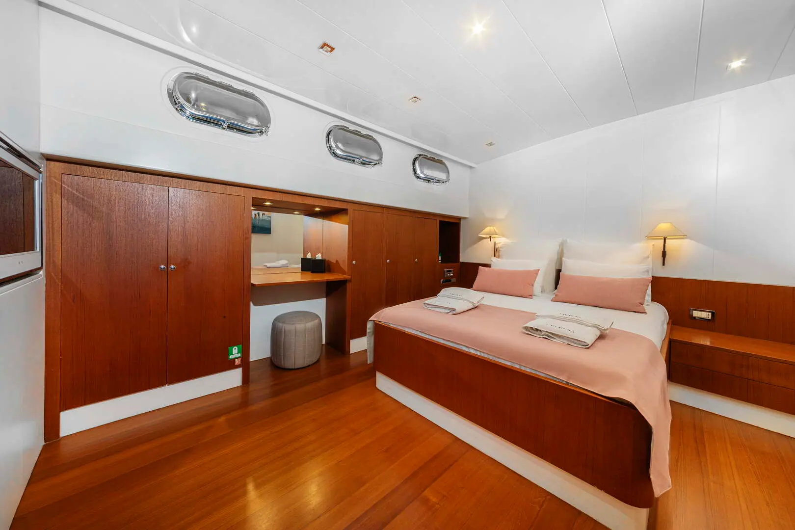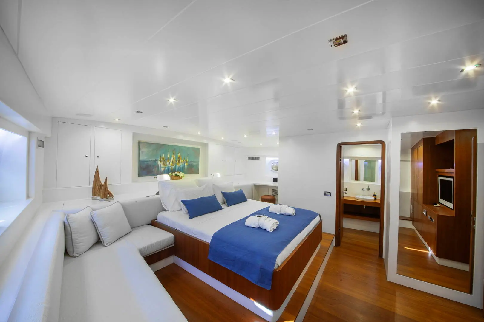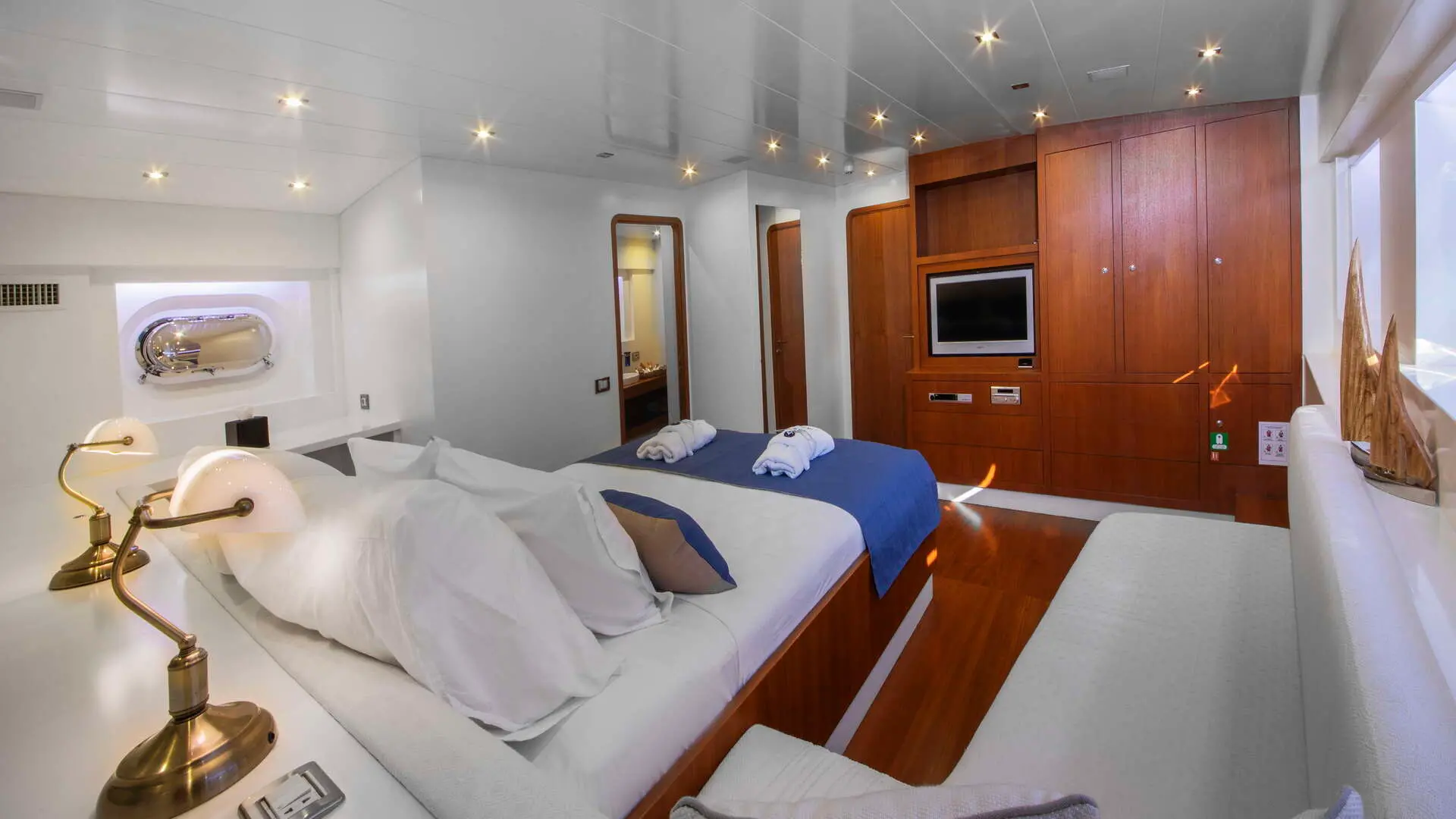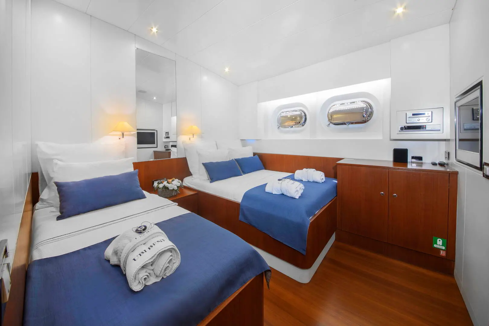 The Gulet Ubi Bene features five luxurious cabins, providing comfortable accommodation for up to 12 guests: Each cabin is designed with elegance and comfort in mind, offering a serene retreat after a day of sailing and exploration. All cabins come with en-suite bathrooms and toilettes, ensuring privacy and convenience for all guests.