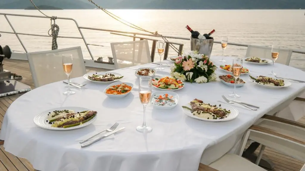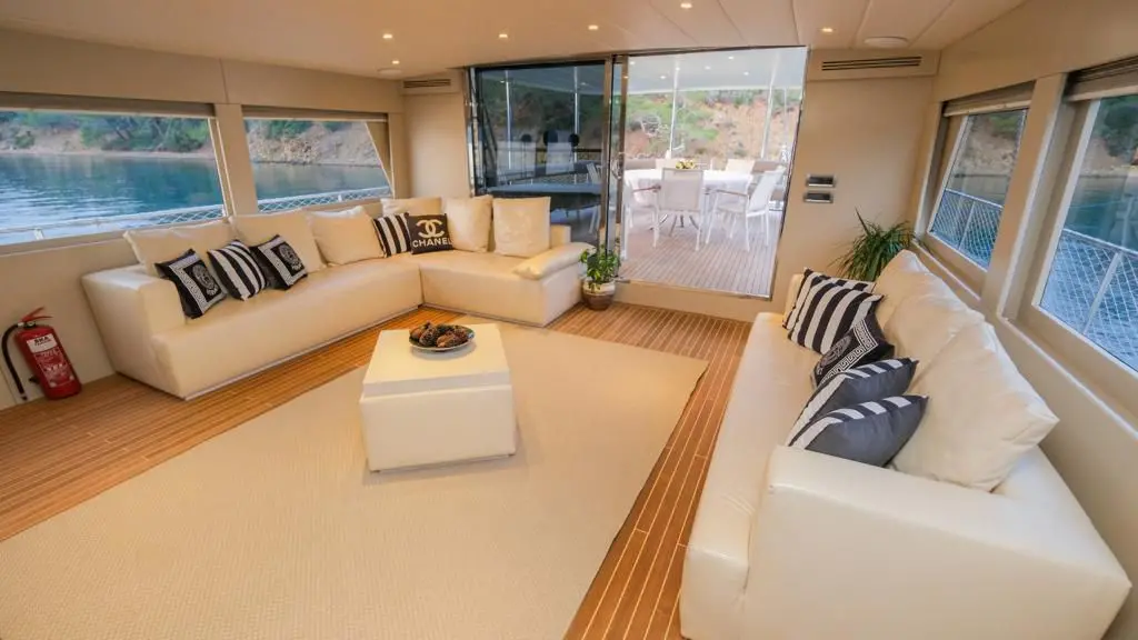 With a fully equipped kitchen featuring an oven, refrigerator, dishwasher, and espresso machine, guests can enjoy personalized gourmet meals prepared to perfection. Gulet Vega’s chiller central air conditioning system ensures a cool and comfortable environment, ideal for relaxation after a day in the sun. Adventure seekers will love the onboard jet ski, Ringo, and fishing equipment, offering endless fun on the water.
