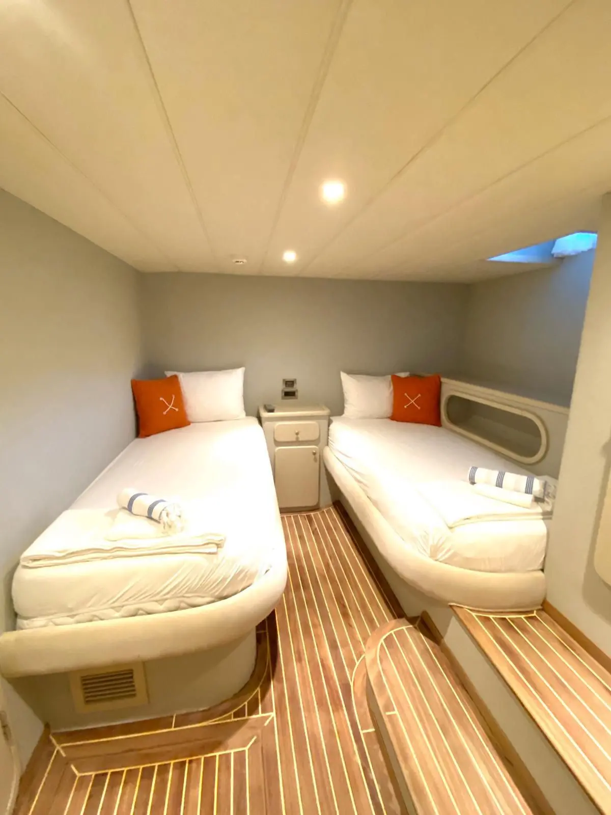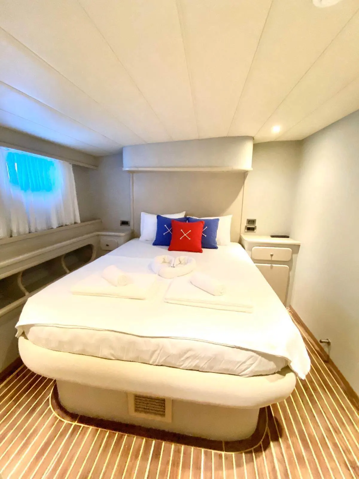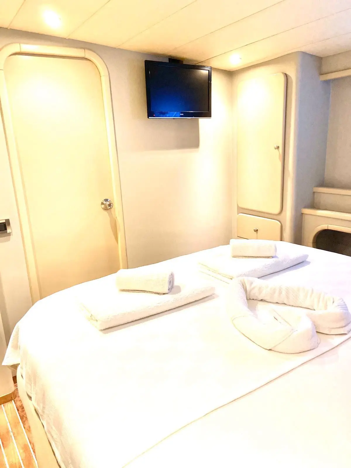 Gulet Vega accommodates 10 guests across 3 master suites and 2 twin cabins. Each cabin is thoughtfully designed with en-suite bathrooms, comfortable bedding, and ample storage, ensuring a restful stay. A dedicated crew of four provides top-notch service, from navigation to gourmet dining. Their professionalism and hospitality create a seamless and luxurious sailing experience.