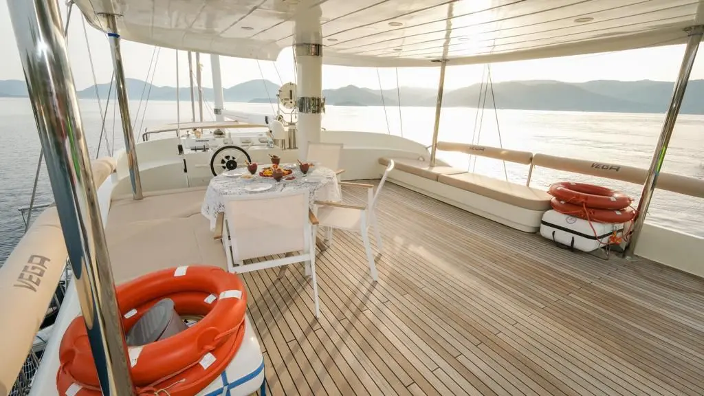 Built in 1999 and set for a major refit in 2025, Gulet Vega combines classic design with modern amenities. With a length of 30 meters and a 7-meter beam, the yacht ensures ample space for relaxation. Powered by a 540 hp Caterpillar engine and two 18 KWA Onan generators, it promises smooth sailing and uninterrupted comfort.