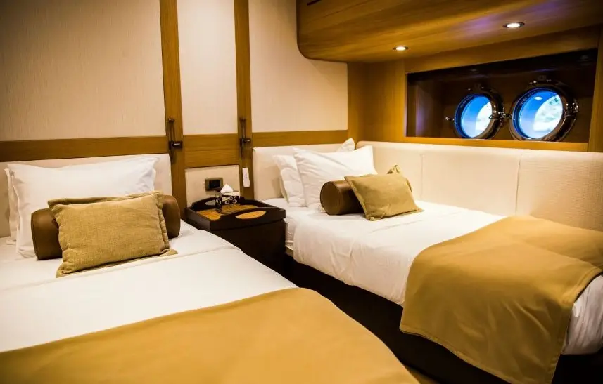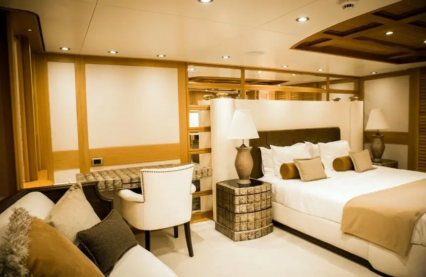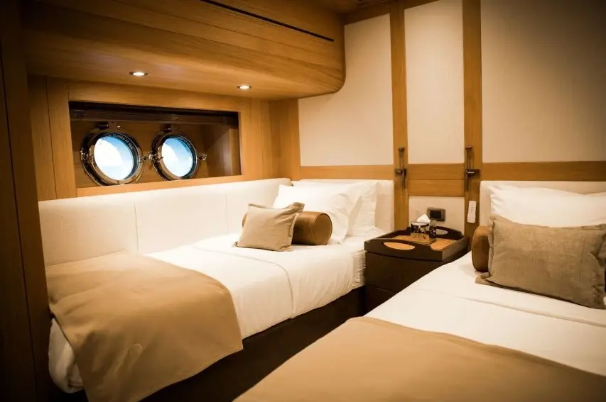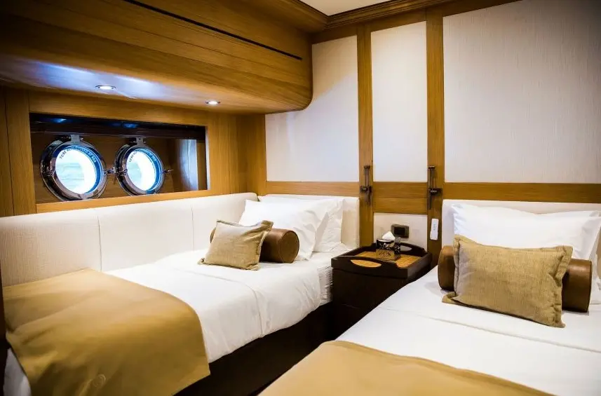 Zanziba's accommodations are meticulously designed for comfort and elegance. The yacht features 1 master suite, 1 double cabin, and 3 twin cabins, each equipped with en-suite bathrooms, electric toilets, and air conditioning, ensuring a restful and luxurious stay for all guests.
