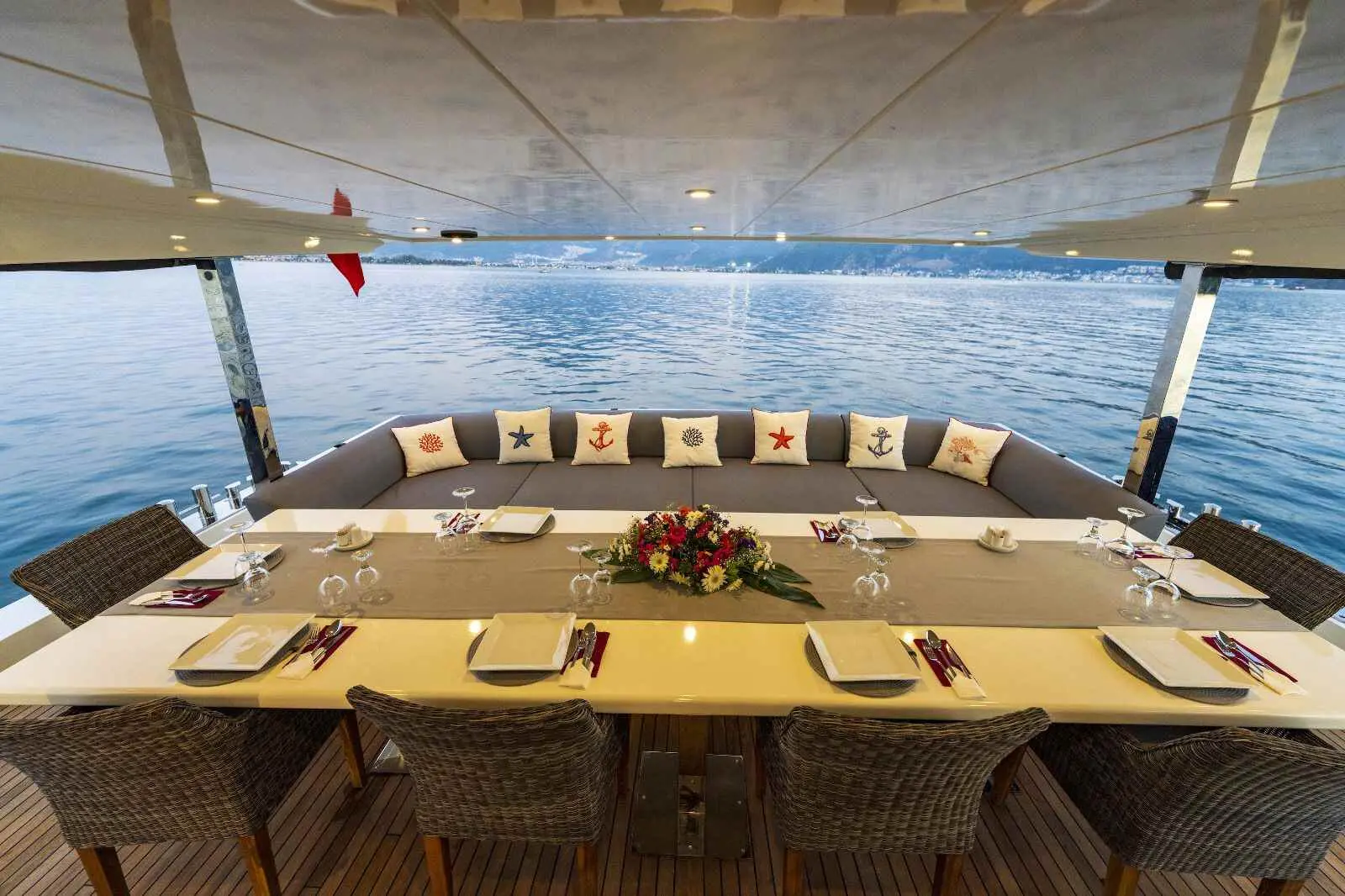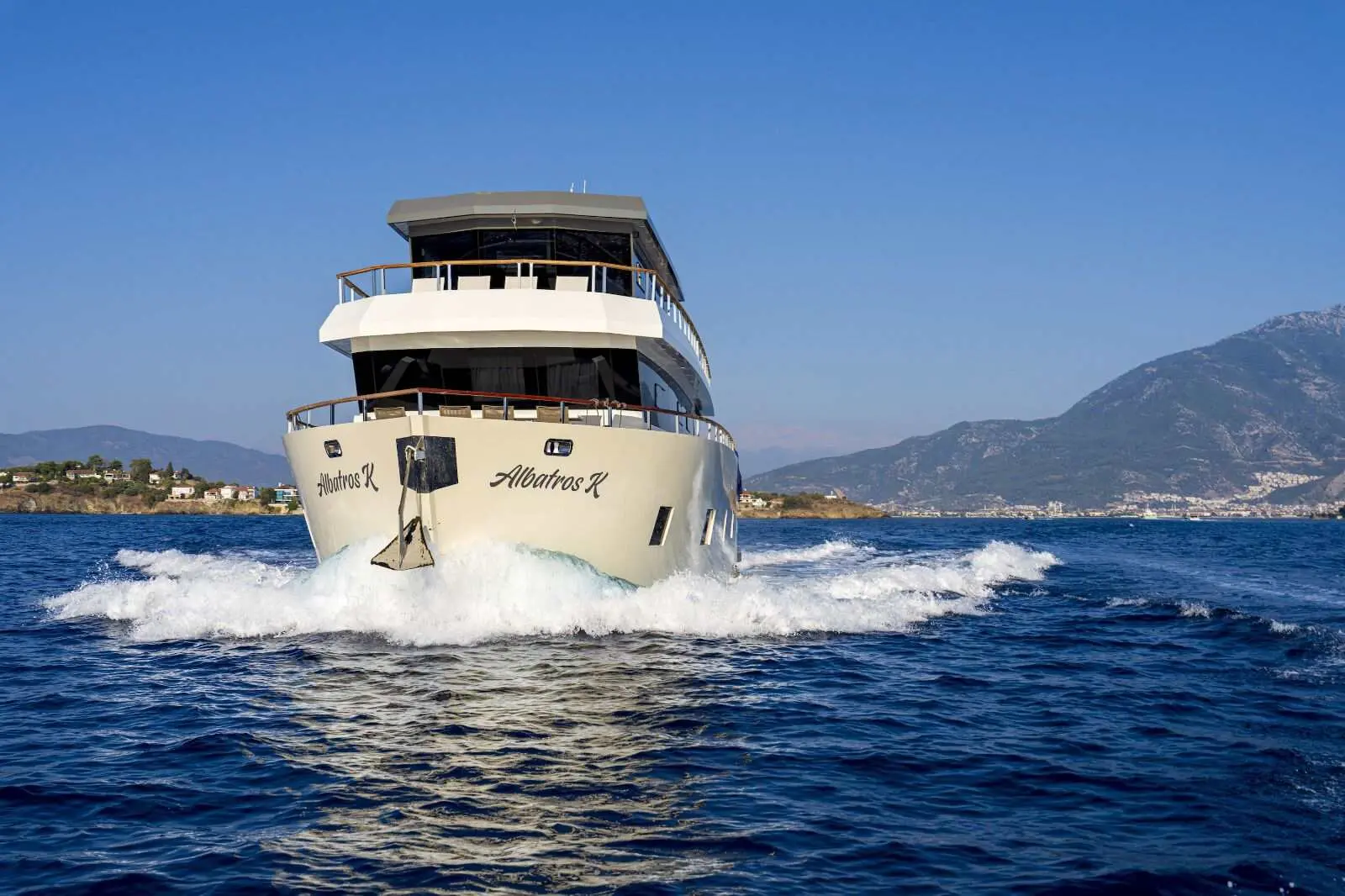 Embark on a luxury voyage aboard Albatros Explorer, a sophisticated trawler moored in Fethiye, Turkey. Designed for 12 guests, enjoy unparalleled comfort, exclusive adventures, and the serene beauty of the Turkish coastline.