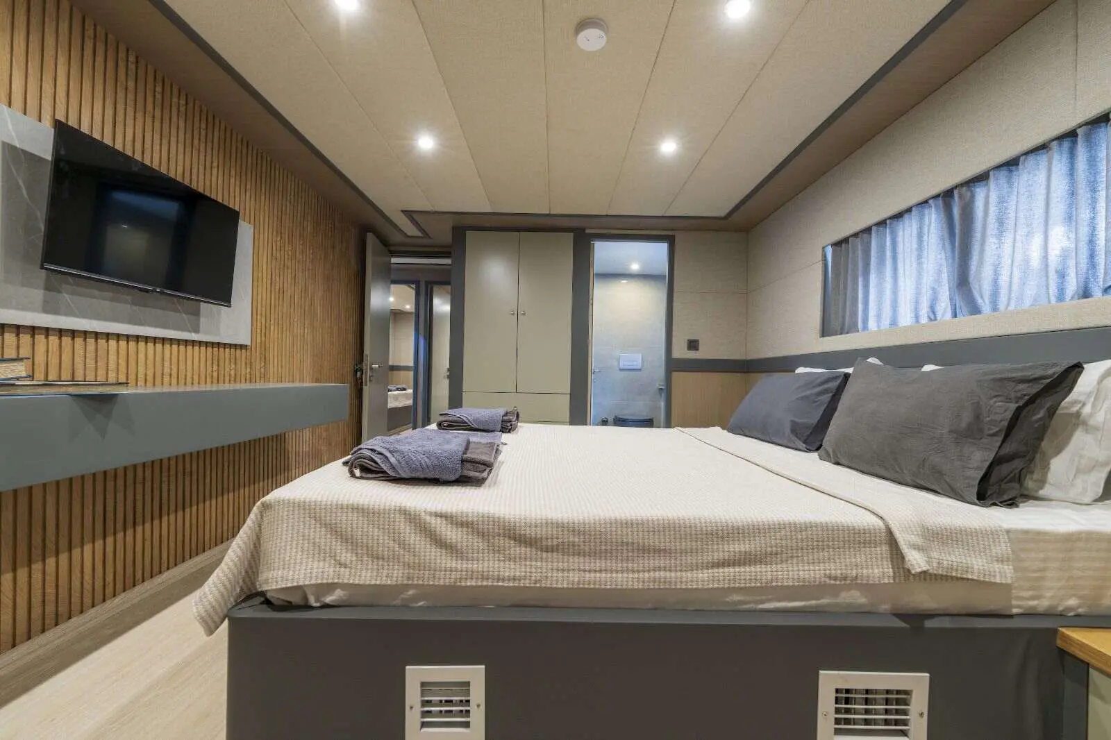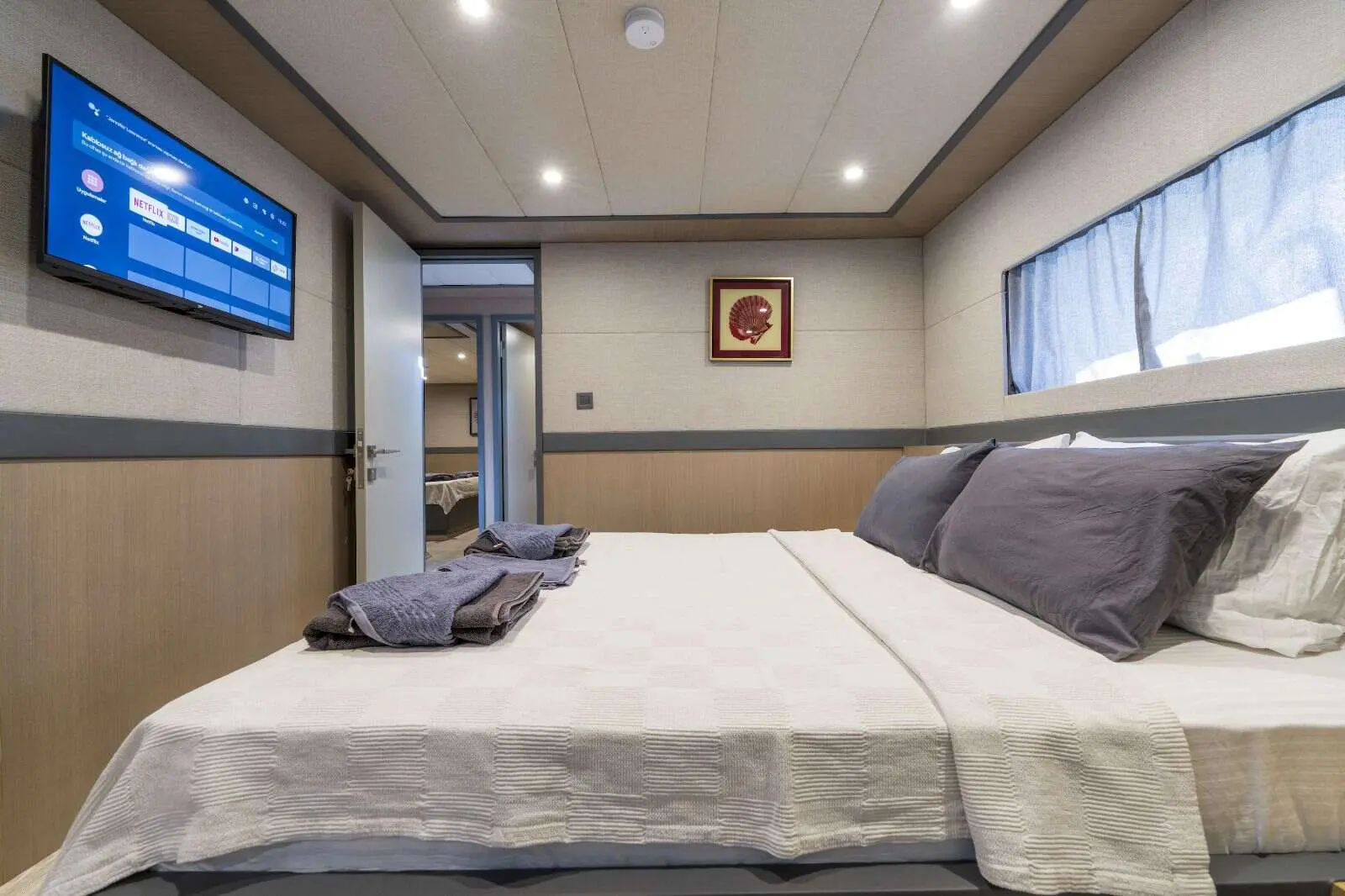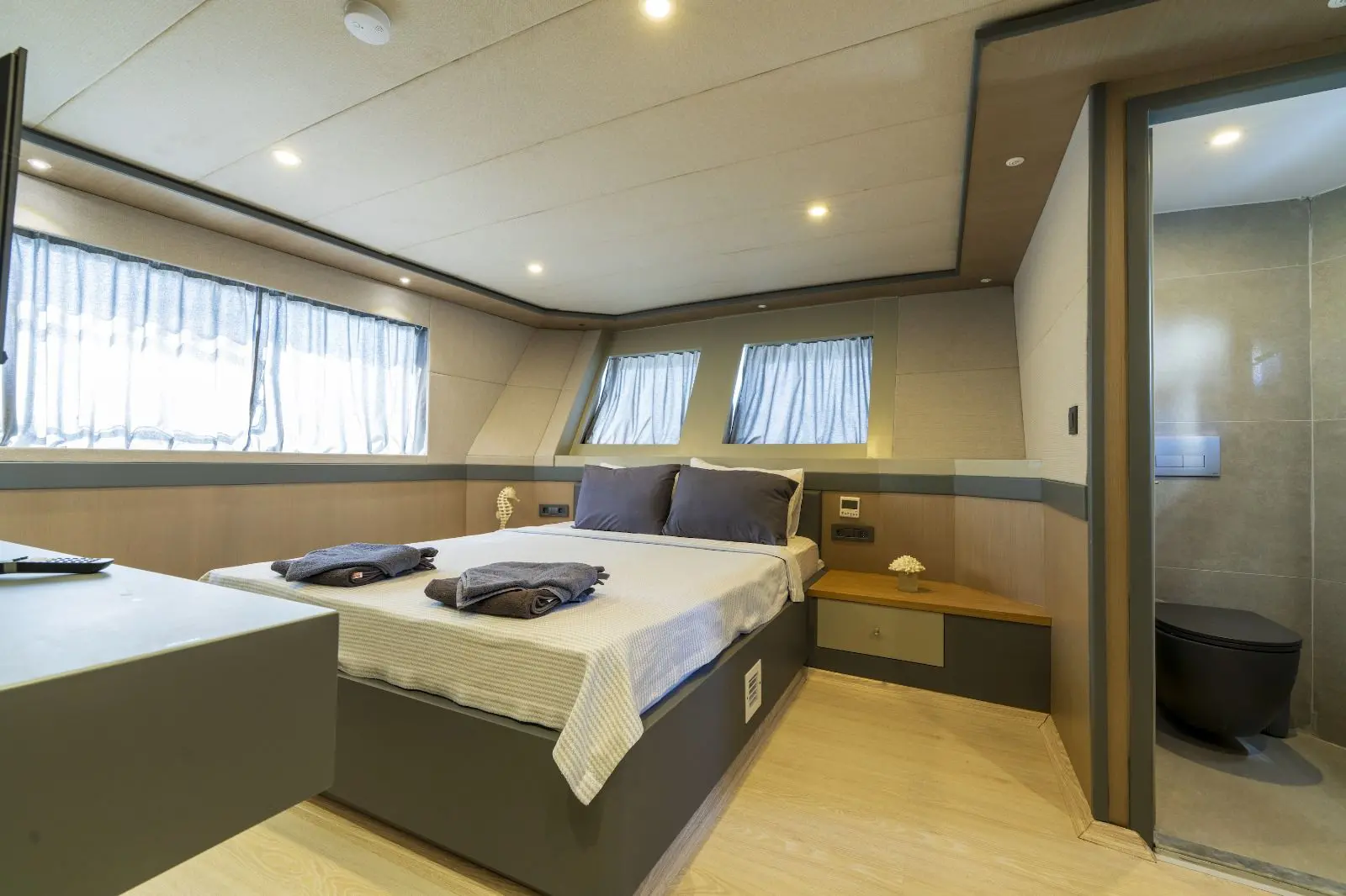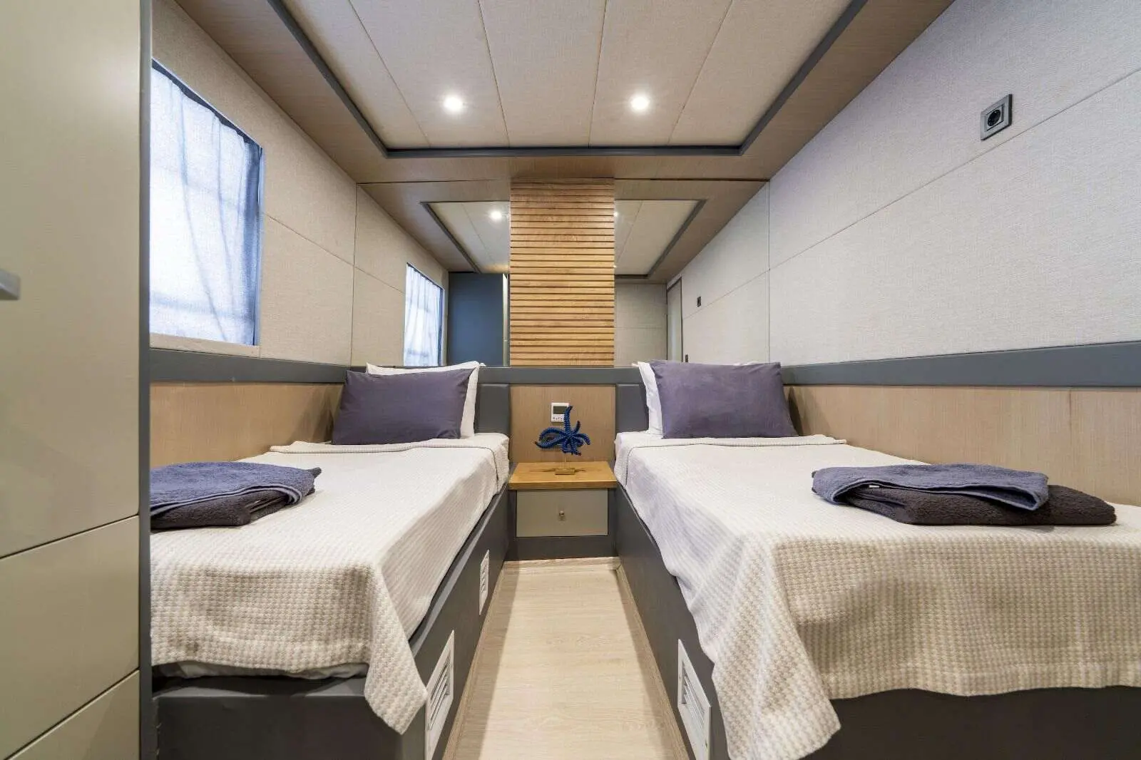 From the sleek exterior to the sumptuous interior, every detail of Albatros Explorer speaks to the pinnacle of yacht design and guest comfort. The vessel boasts six beautifully appointed cabins, including two master suites, three double cabins, and one twin cabin, all equipped with en-suite bathrooms and air conditioning, promising a restful night's sleep after a day of exploration.