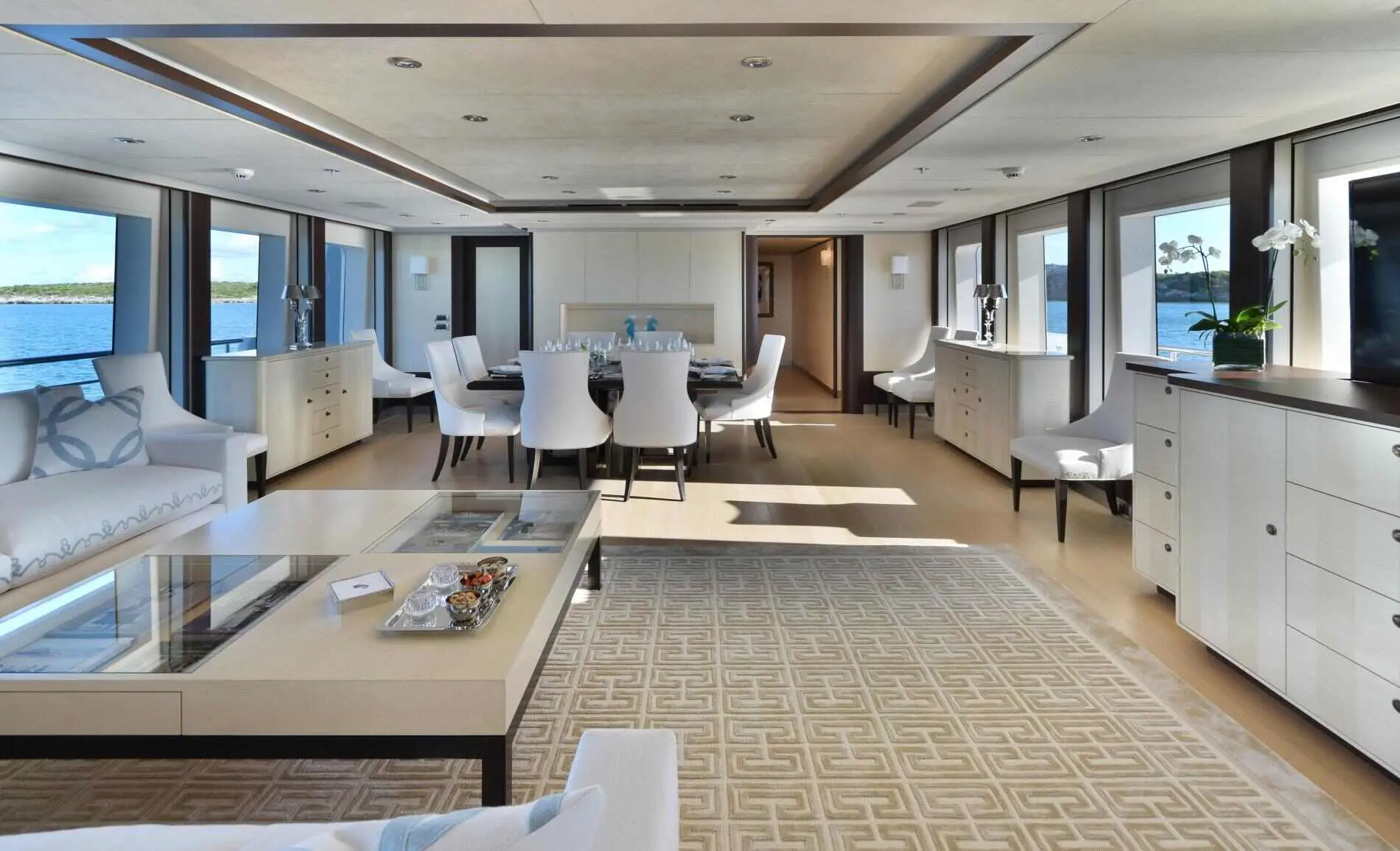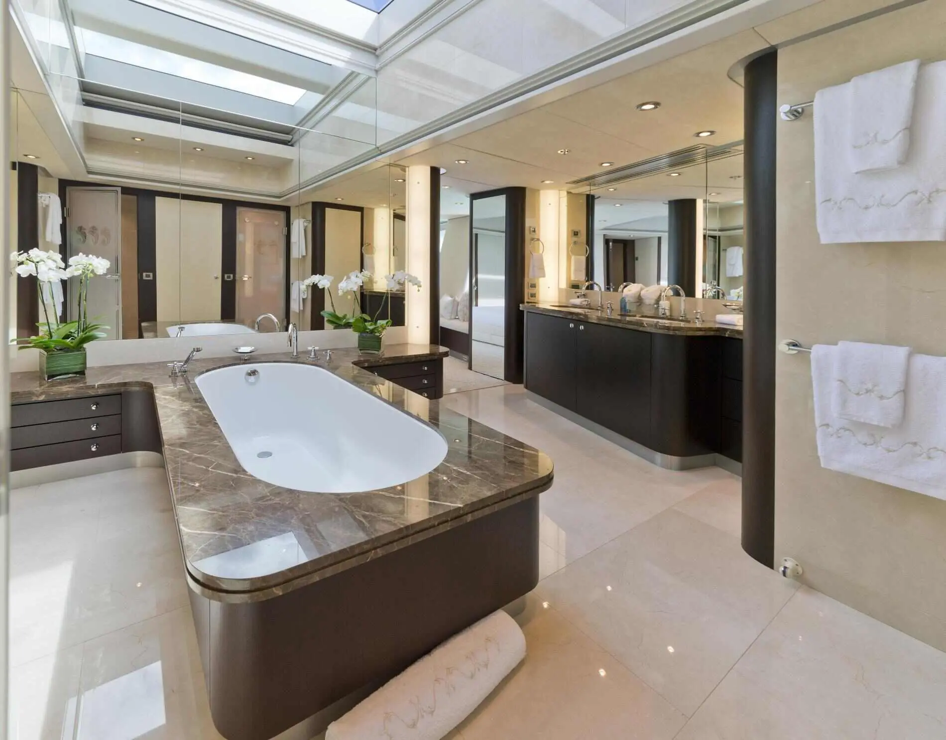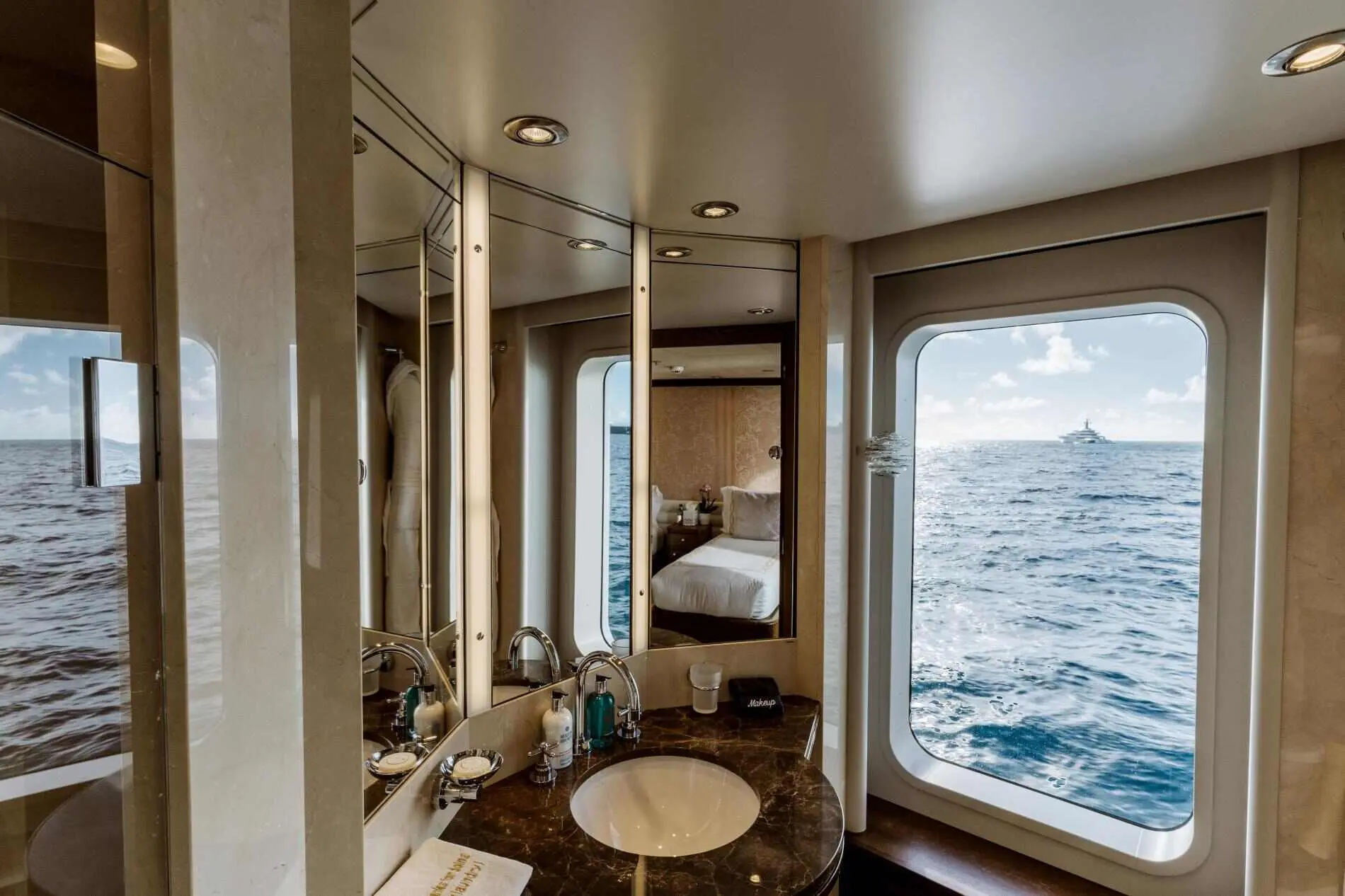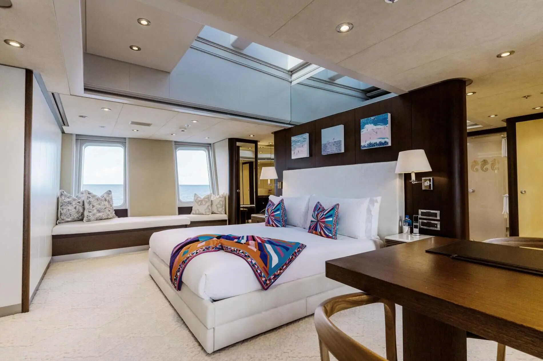 With a skilled crew of 9, spacious accommodations, a variety of water sports, and an exclusive beach setup, Bella is the ideal choice for families, friends, or corporate groups looking for the ultimate yachting experience. Bella offers spacious and elegantly designed accommodations, ensuring a luxurious and private experience for up to 12 guests.