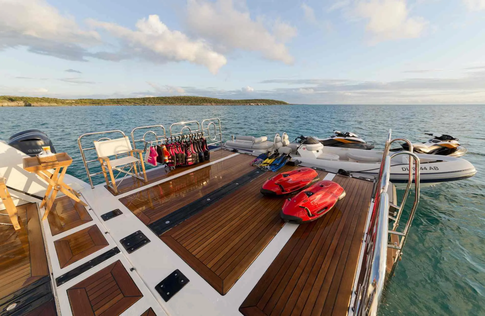 Both captains are PWC certified crew members, New Williams 625 Jet drive tender 2023, 2 jet skis (Seadoo Trixx), 1 adult Wake board, 1 kids Wake board, 1 set adult skis, 1 set kids skis, 1 slalom ski, 2 stand up paddle boards, 2 elliptical boards, 1 electric surf, 1electric foil, 3 Seabobs F5S, 1 skurf board, 1 skimboard, Pool noodles, snorkeling gear enough for 12, 2 inflatable kayaks, Towed Behind the tender, Banana, Mable, Ski, Wake board, 3 Collapsing tables, 12 dinning beach chairs, 16 short foldaway beach chairs, 4 large folding beach chairs, 2 gazebo’s, 3 umbrellas, 2 beach blankets, Giant jenga, Hours shoe toss, Putting beer pong, Slack line, Corn hole, Volleyball, badminton, Bocce, Golf driving mat with fish food golf balls