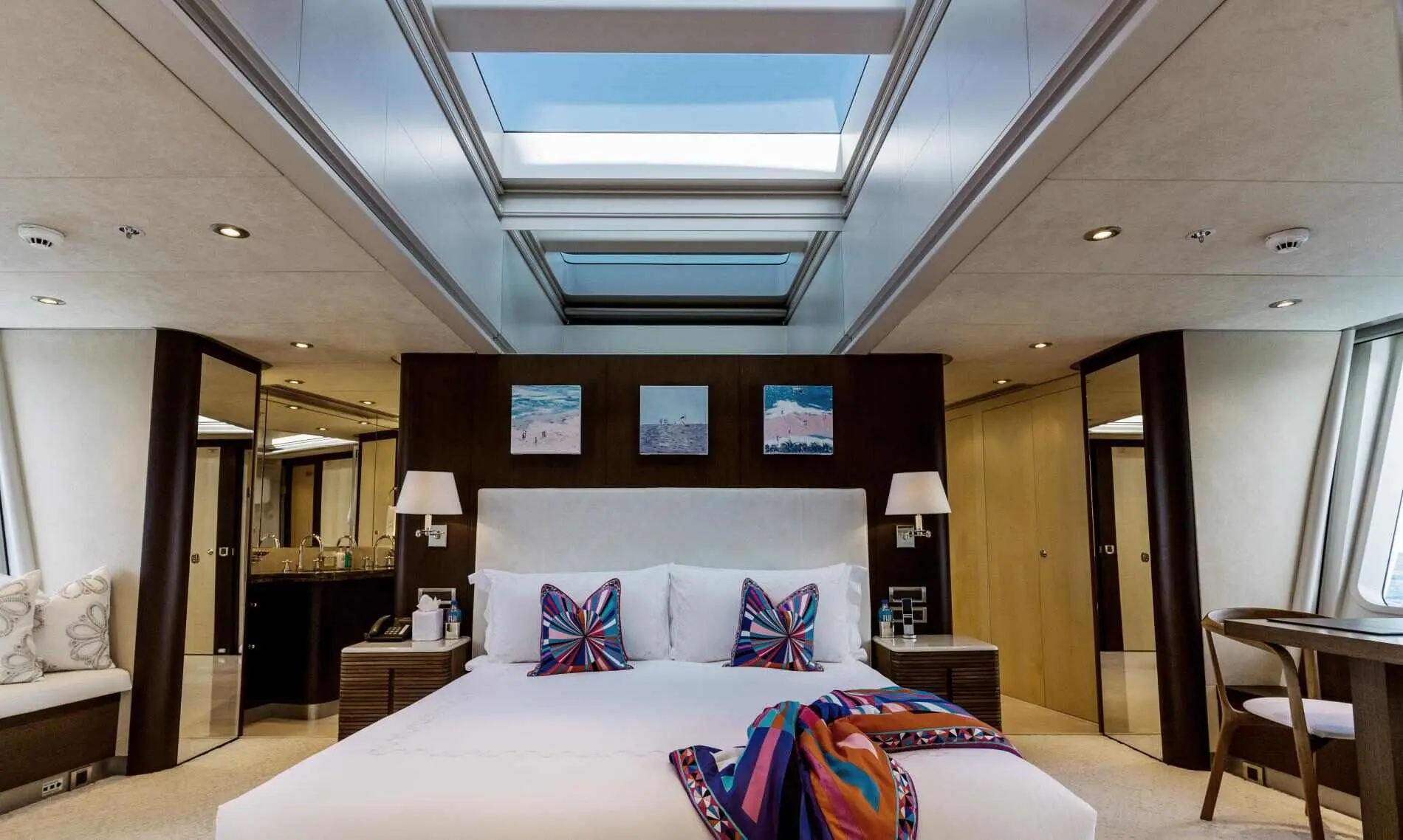 With a skilled crew of 9, spacious accommodations, a variety of water sports, and an exclusive beach setup, Bella is the ideal choice for families, friends, or corporate groups looking for the ultimate yachting experience. Bella offers spacious and elegantly designed accommodations, ensuring a luxurious and private experience for up to 12 guests.