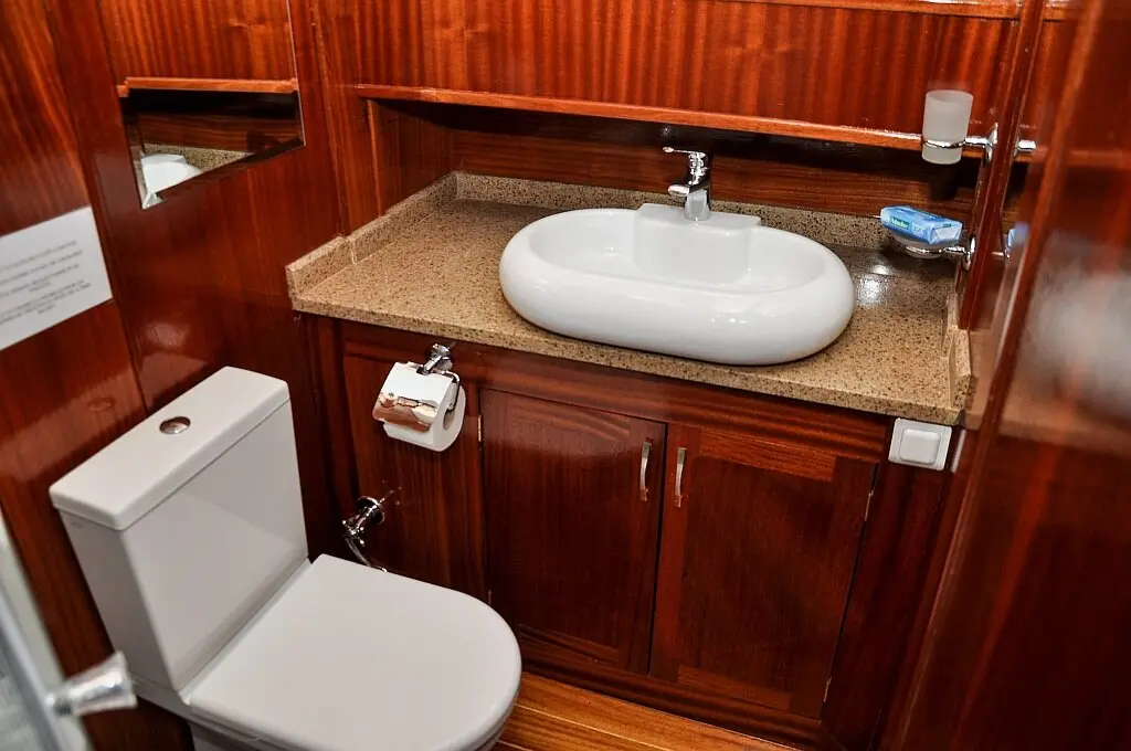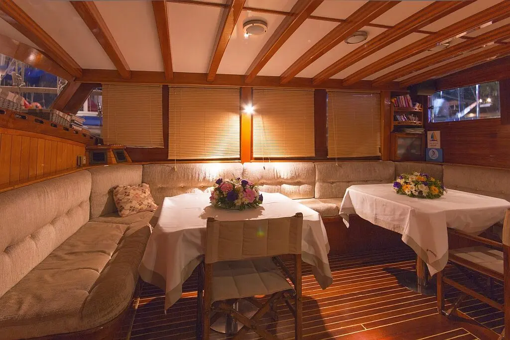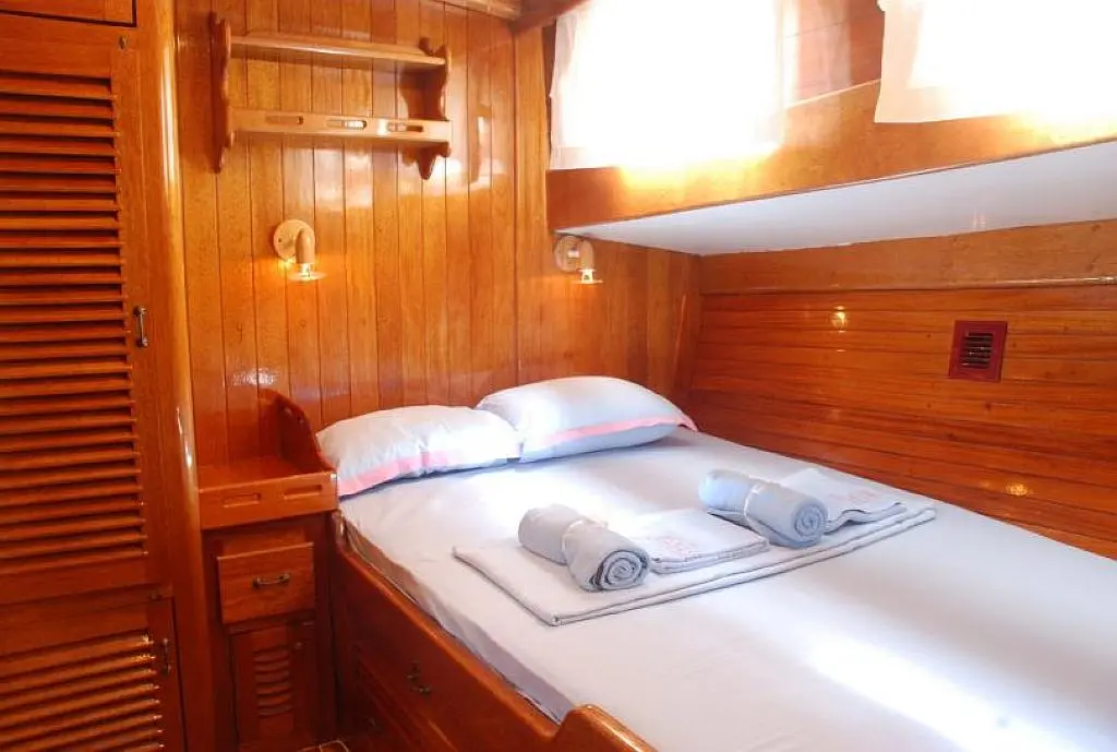 The gulet features a comfortable and spacious layout with. Each cabin is tastefully decorated and equipped with air conditioning, ensuring a cozy stay even on the hottest days.