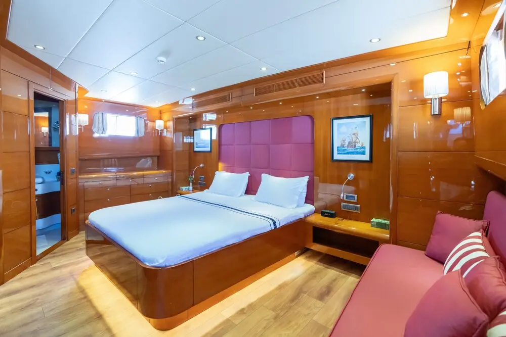 Powered by two John Deere engines and supported by dual generators, Gulet Canaria cruises efficiently at 10 knots. Whether you’re on a leisurely tour or moving between destinations, the yacht provides.