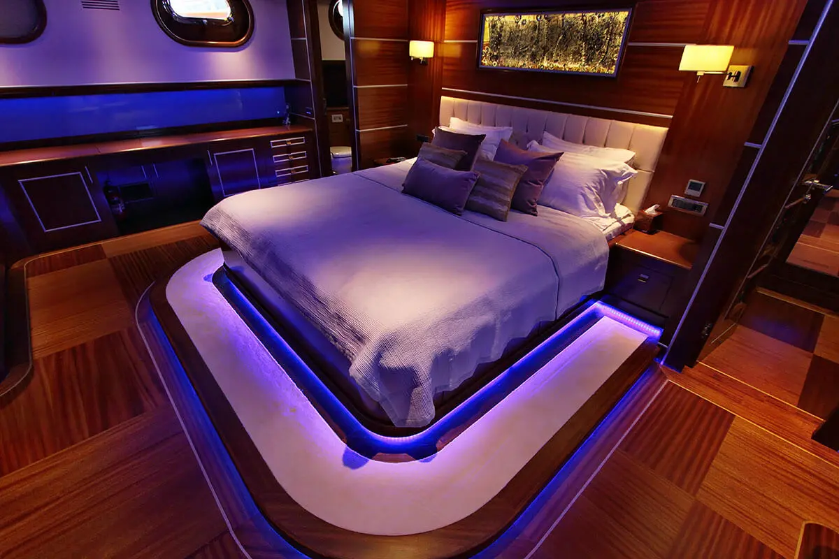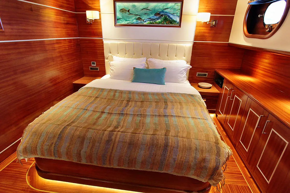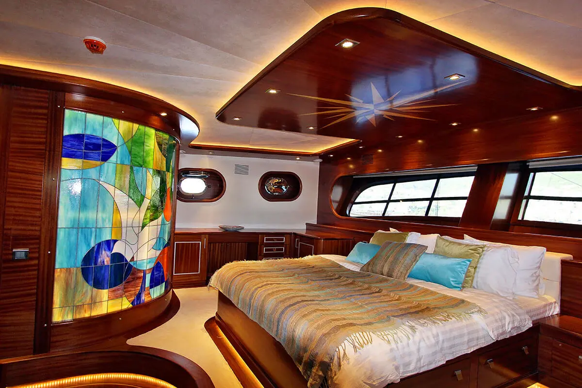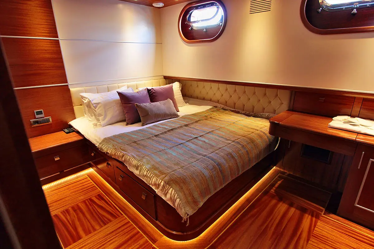 Powered by twin 600 hp Iveco engines and maintained by a dedicated crew of seven, Carpe Diem V navigates the enchanting waters of the Aegean with ease, offering a serene and swift voyage. The accommodations on Carpe Diem V are designed to offer guests a sanctuary of luxury and tranquility at sea. With 2 Master, 2 Double, and 2 Twin cabins, each equipped with air conditioning, en-suite shower boxes, and electric toilettes, guests are assured privacy and comfort throughout their voyage.