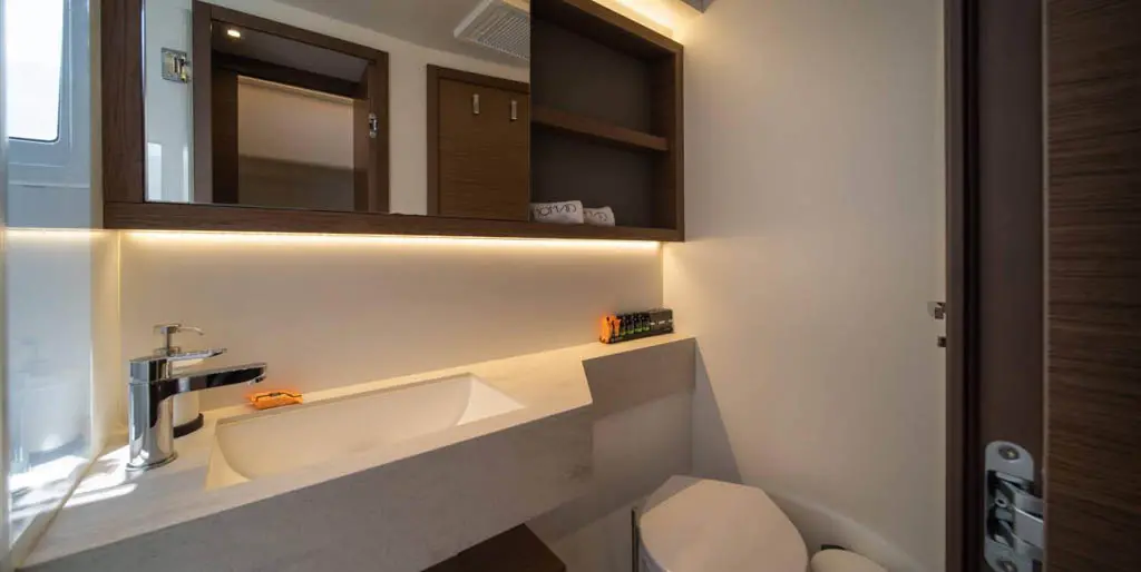 Nomad II features a versatile cabin layout that caters to up to 10 guests. All cabins are equipped with air conditioning, electric toilets, and shower boxes, ensuring every guest enjoys a comfortable stay. The stylish interiors are designed to create a cozy yet elegant atmosphere.