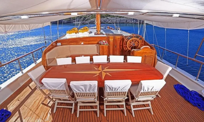Every aspect of Cevri Hasan IV’s design is aimed at providing guests with a journey that's not just a trip but an experience. From its sleek lines to the powerful 440 hp Volvo engine ensuring smooth cruising, this gulet is a marvel of maritime engineering.