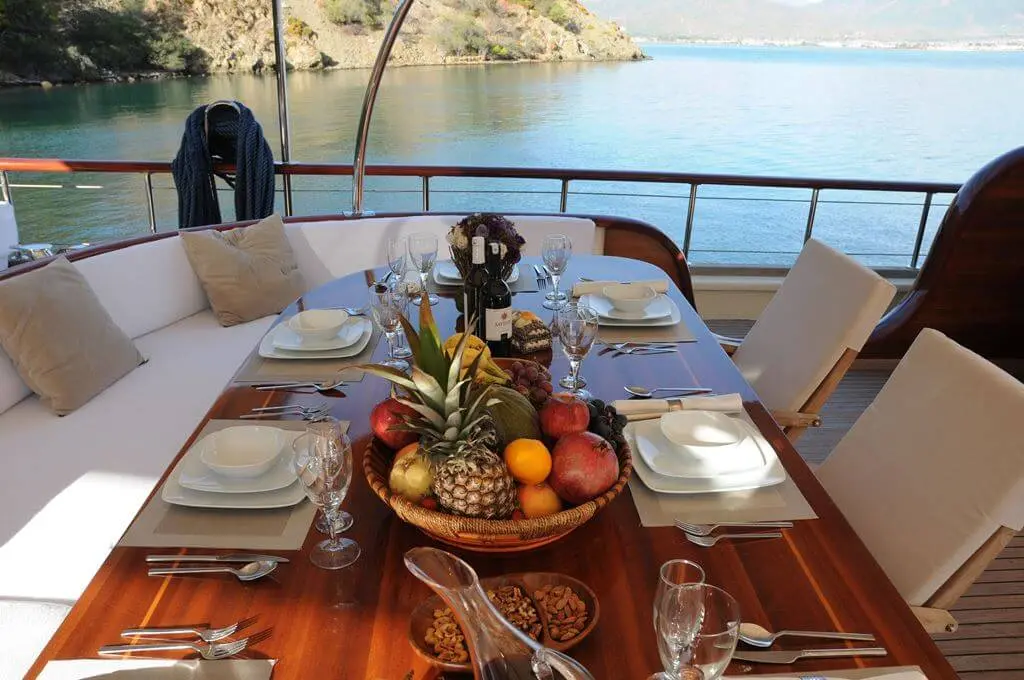 Dining on Dear Lila is a culinary adventure, featuring dishes that celebrate Turkish cuisine and the freshest local ingredients. Our onboard chef crafts every meal with care, offering a menu that's both a delight to the palate and a tribute to Turkish culinary traditions.