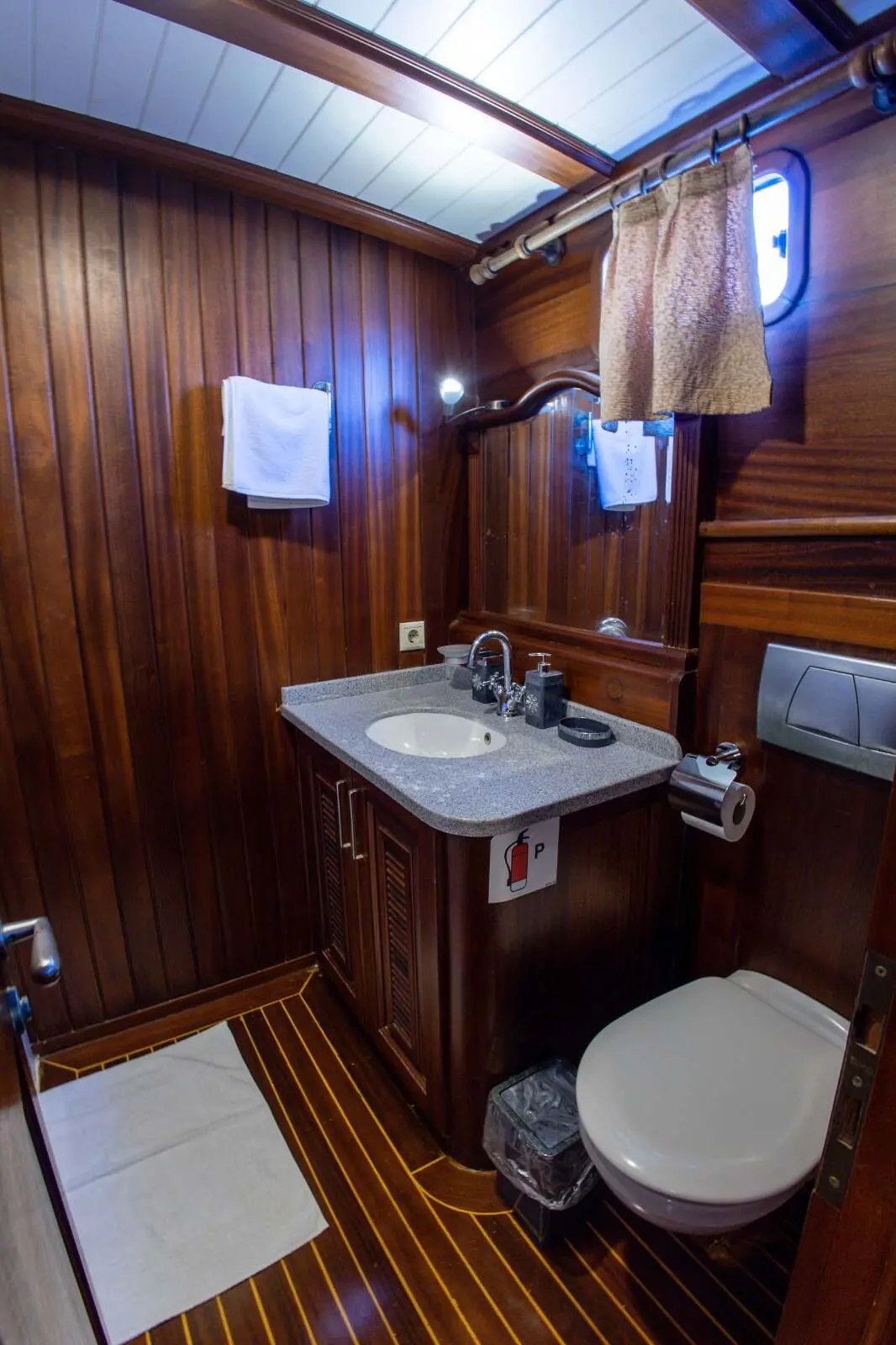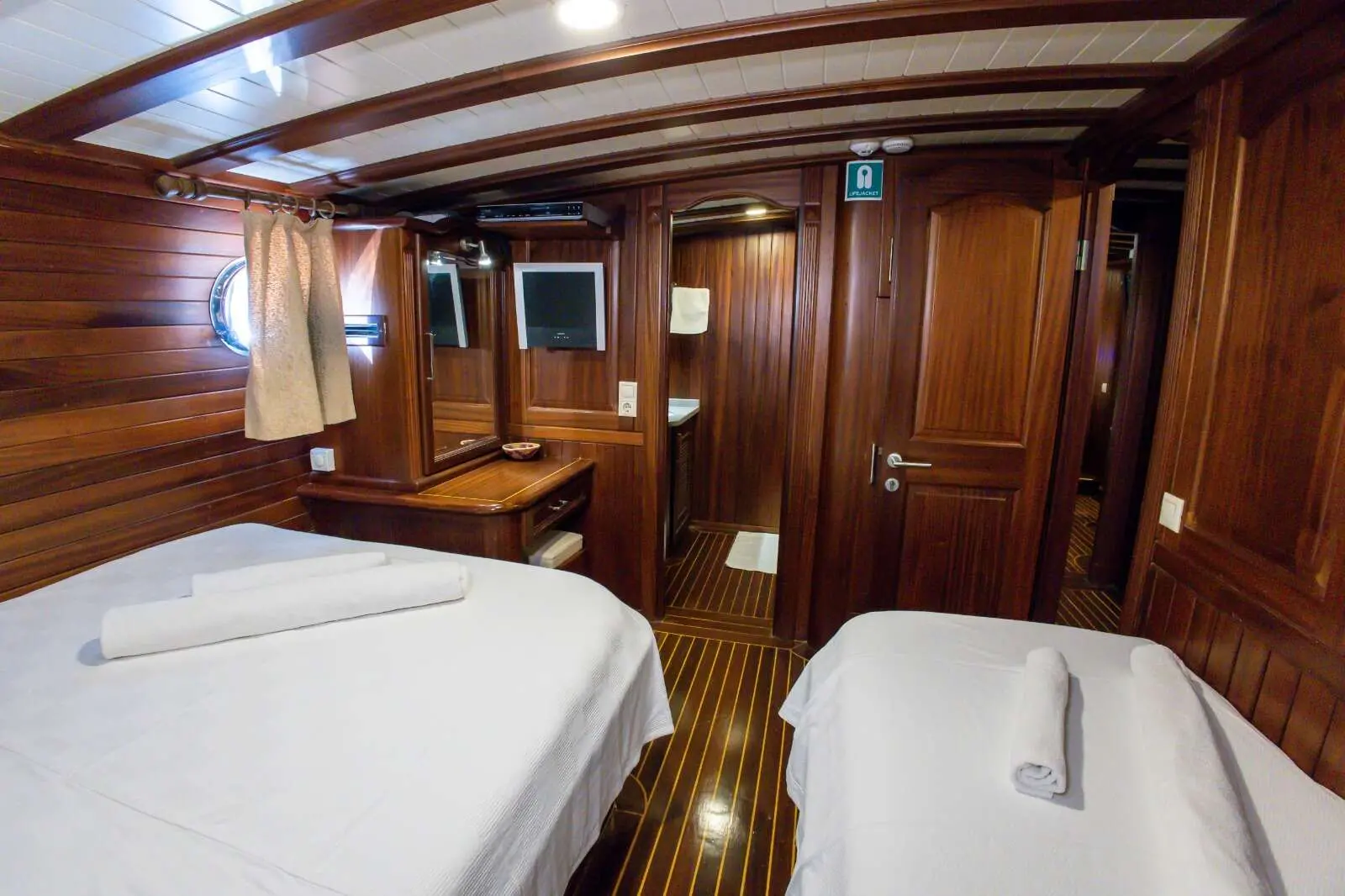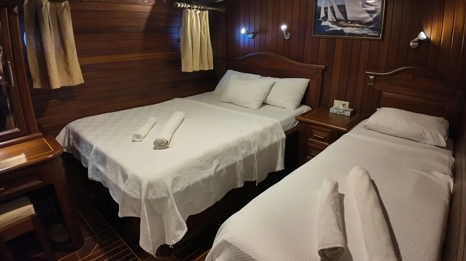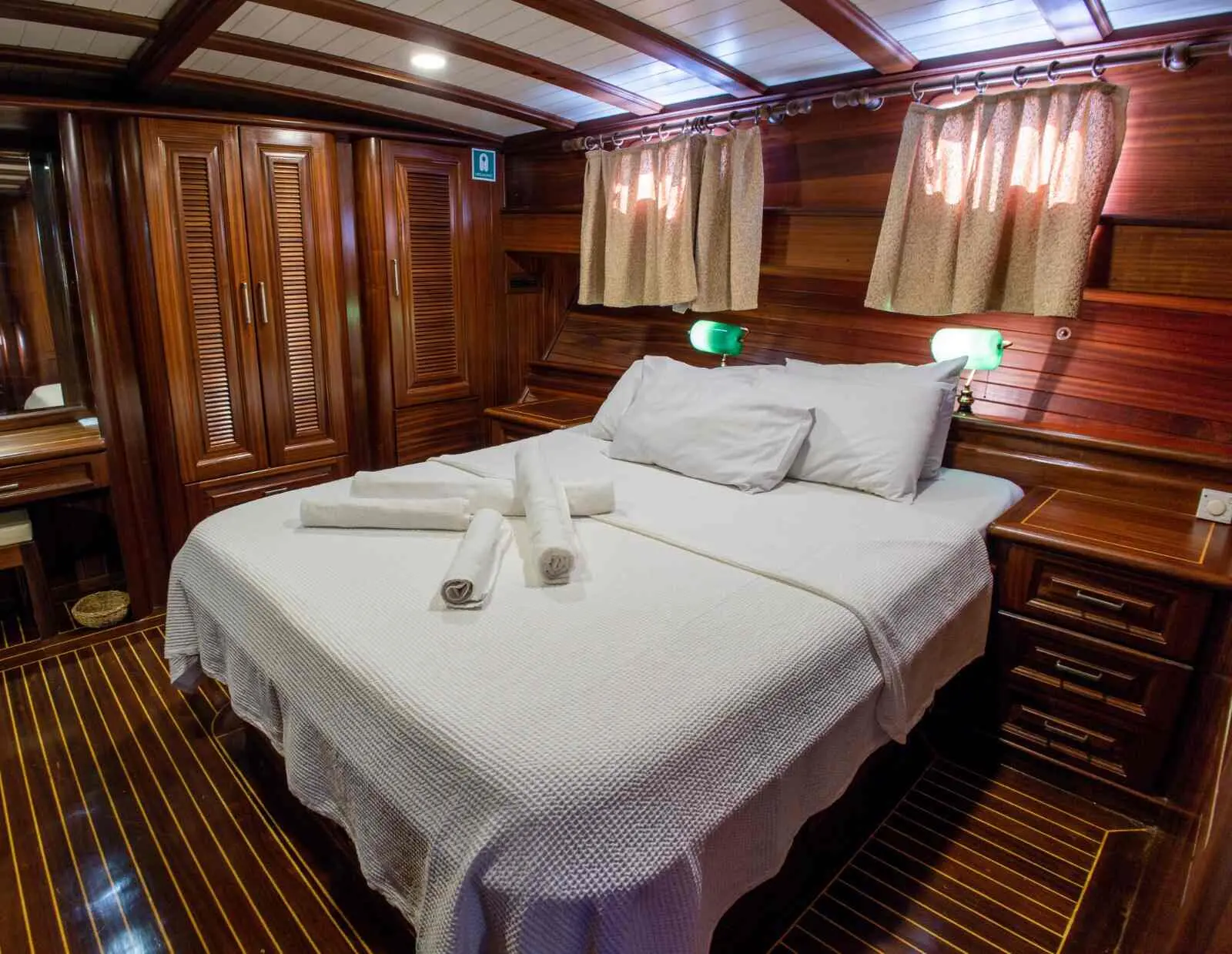 A skilled crew of five, from the captain to the chef, ensures every aspect of your journey aboard Dreamland is catered to perfection, making each moment unforgettable. With 2 Master and 4 Twin cabins, Dreamland offers a sanctuary of comfort and style, each equipped with air conditioning and private bathrooms, reflecting the gulet's commitment to your rest and relaxation.
