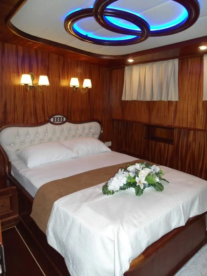 A passionate crew of five brings the spirit of Turkish hospitality to life, ensuring every aspect of your journey is attended to with meticulous care and personalized service. Six luxurious double cabins offer a tranquil retreat after a day of exploration, featuring en-suite bathrooms, air conditioning, and the finest amenities for your rest and relaxation.