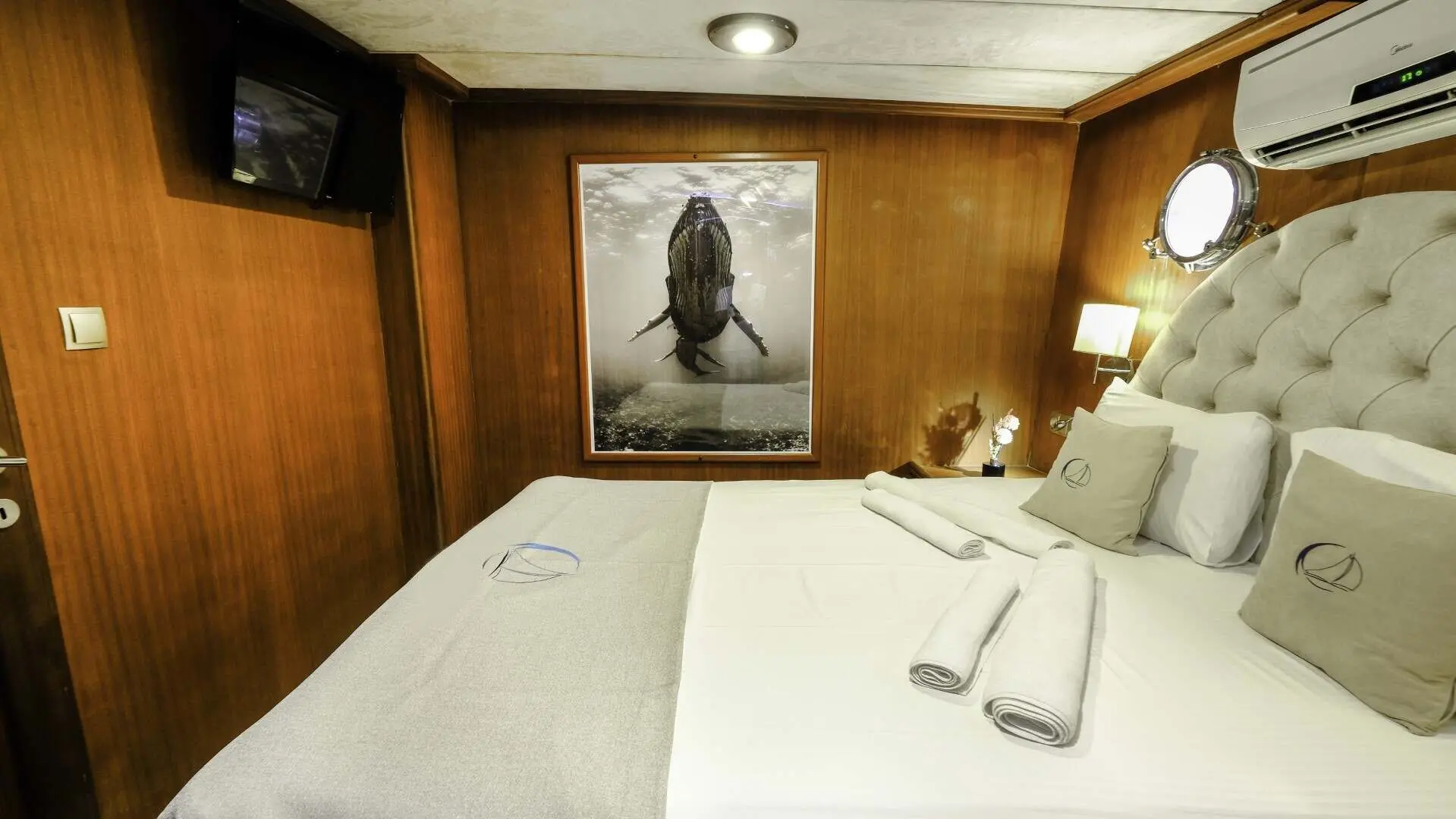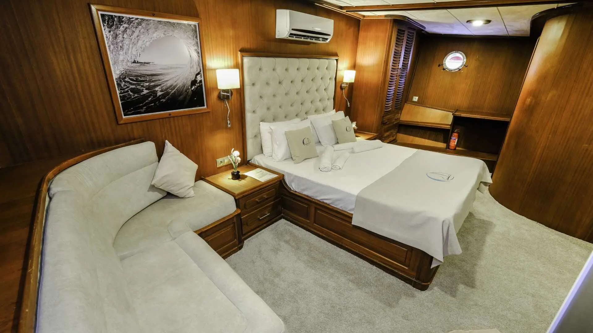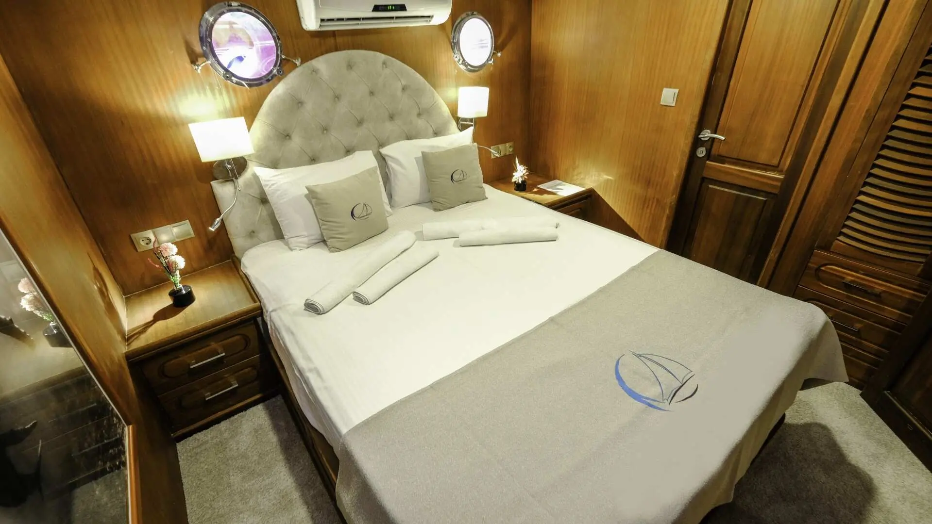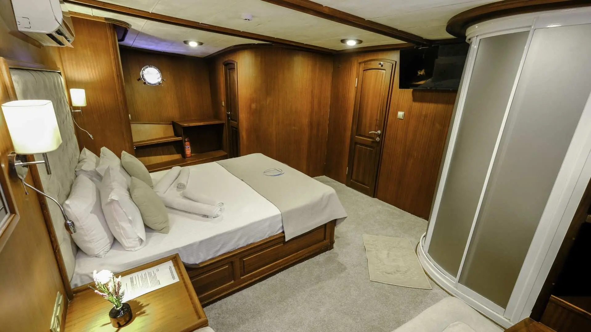 The Efe Burak offers accommodation for up to 12 guests across six beautifully appointed cabins. The cabin configuration includes two master cabins, two double cabins, and two triple cabins, providing flexible options to cater to different group sizes and compositions.