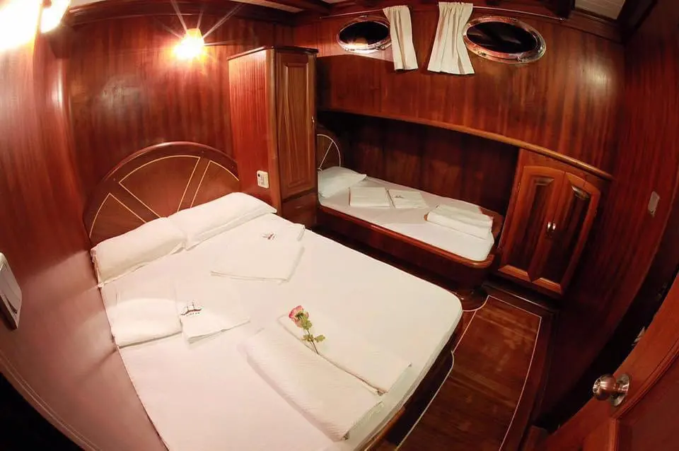 A dedicated crew of four ensures your journey is seamless, offering personalized service and expertise that highlight the warm hospitality Turkey is known for. Galip Nur boasts five double cabins and one triple cabin, each featuring en-suite facilities and air conditioning, designed for your ultimate comfort and privacy.