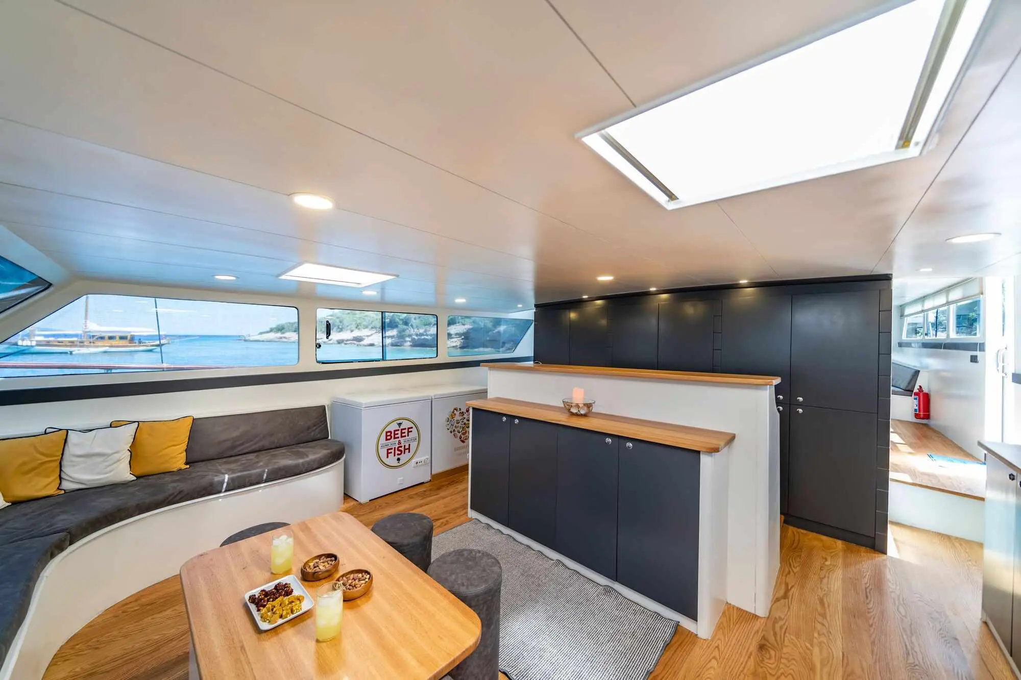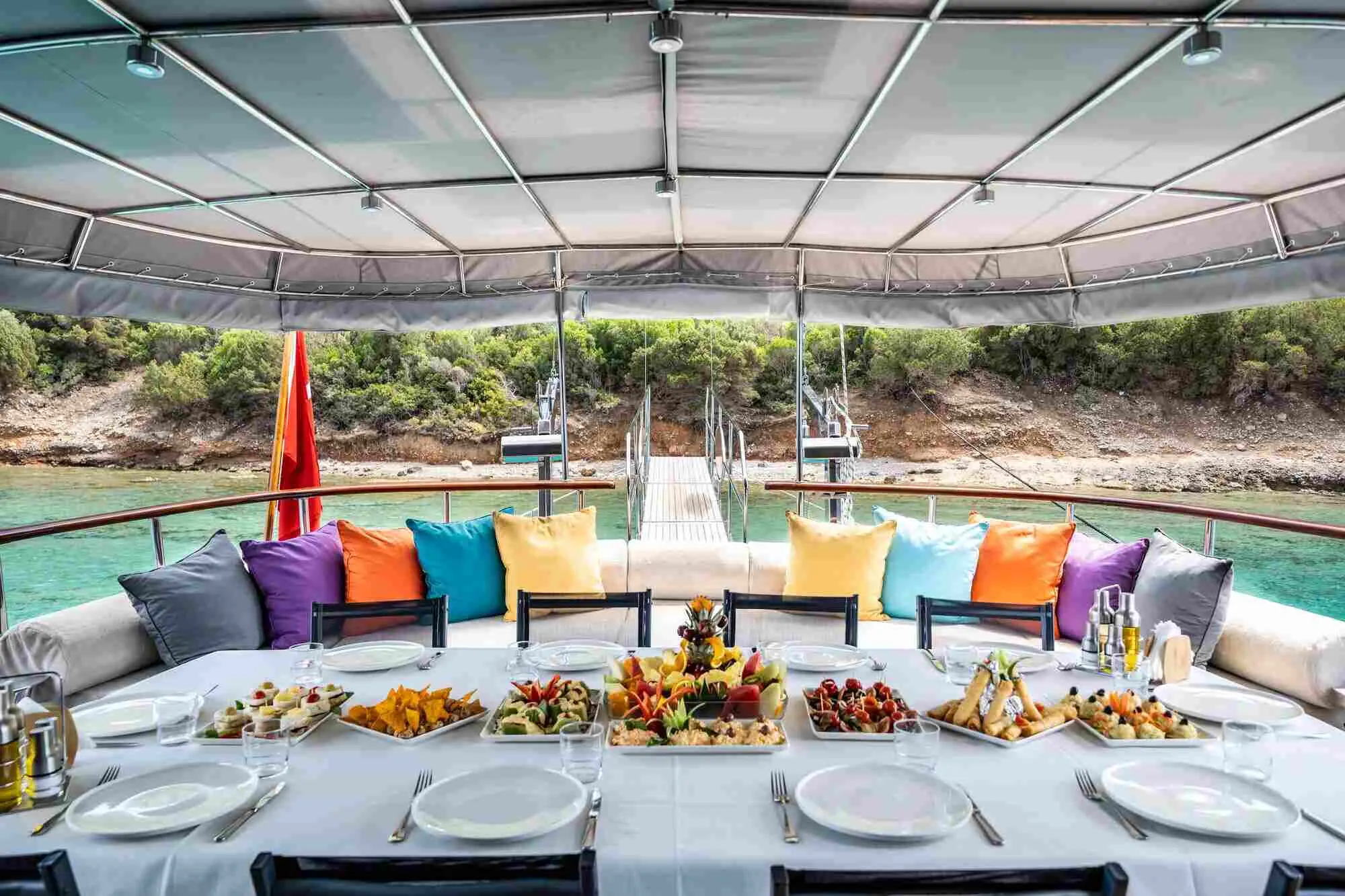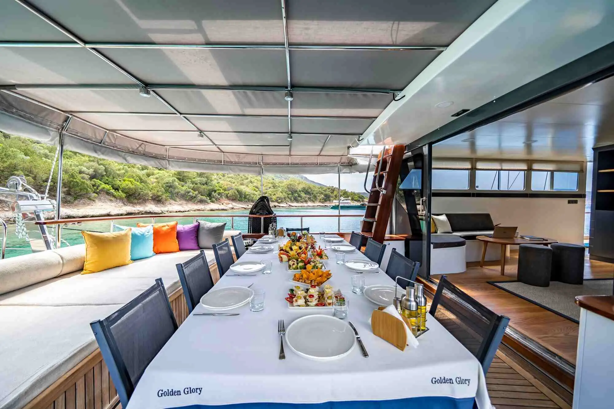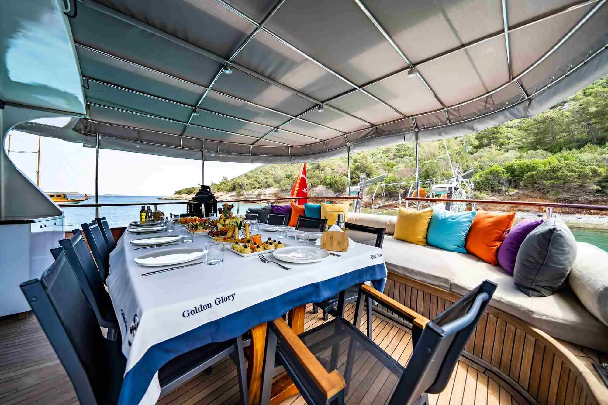 Indulge in delicious meals prepared by the onboard chef, featuring a mix of international dishes and local Turkish delicacies, served in the gulet's indoor restaurant. Dining on Golden Glory is not just about the food; it's an opportunity to experience the vibrant flavors of the Aegean, complemented by the stunning backdrop of the sea.