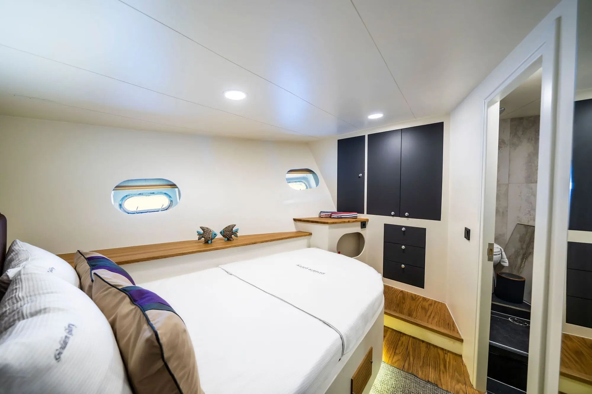 A skilled crew of four ensures that every aspect of your journey on Golden Glory is seamless, from navigation to personalized service, allowing you to relax and immerse in the beauty of Bodrum's coast. Golden Glory offers six double cabins, each a cozy retreat with air conditioning, en-suite bathrooms, and all the comforts needed for a restful night's sleep after a day of exploration.