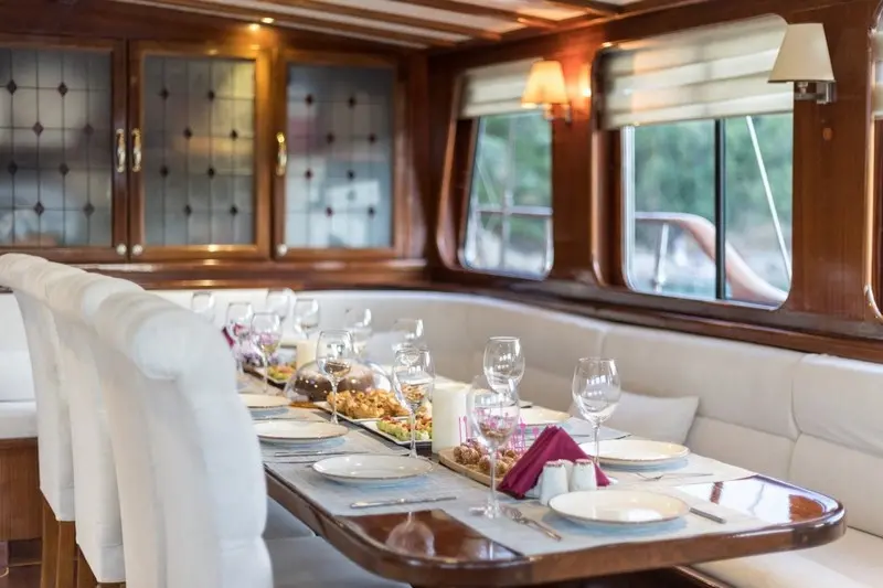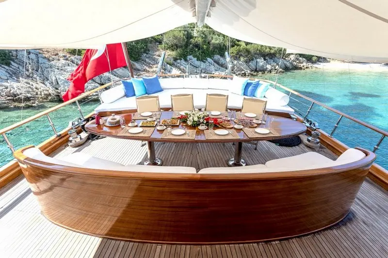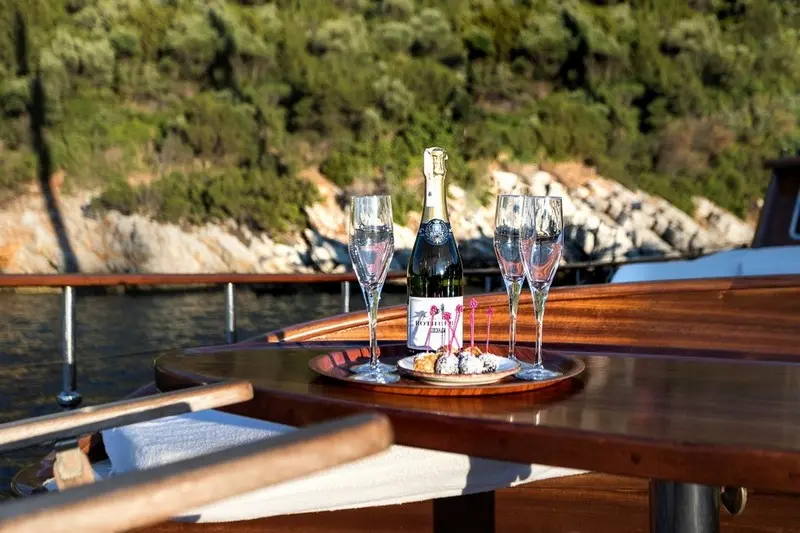 Indulge in culinary creations that fuse the best of international and Turkish cuisines, prepared by our skilled chef with the freshest local ingredients, promising a delectable journey of flavors. Experience dining under the stars or the warmth of the sunrise, where the beauty of Bodrum’s seascape enhances every meal, making dining aboard Grace I a truly unforgettable experience.