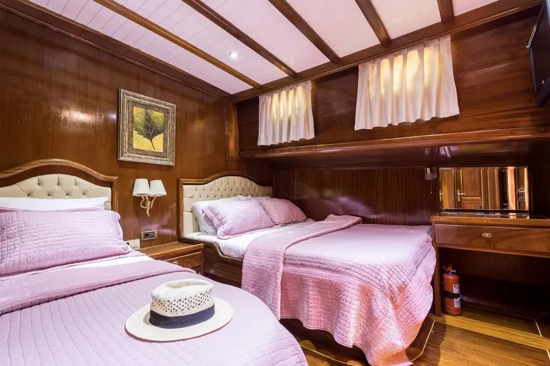 A seasoned crew of five brings the spirit of Turkish hospitality to life, ensuring your voyage on Grace I is filled with moments of joy, relaxation, and impeccable service. Grace I offers luxurious lodging in 2 Master, 2 Double, and 2 Twin cabins, each equipped with air conditioning and private bathrooms, designed to be your serene retreat after a day of Aegean adventures.