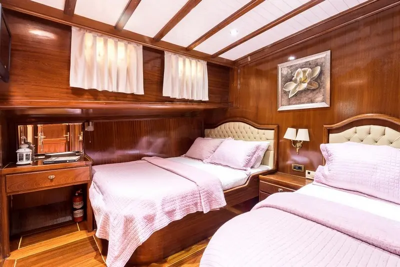 As you step onto Grace I, you’re not just boarding a gulet; you’re embarking on a journey that celebrates the rich maritime heritage of Turkey while indulging in the comforts and sophistication of contemporary sailing. Grace I, with its 30 meters of elegance, boasts a spacious beam of 7.75 meters and a draft of 3.20 meters, reflecting a perfect balance between traditional gulet design and the needs of modern seafarers.