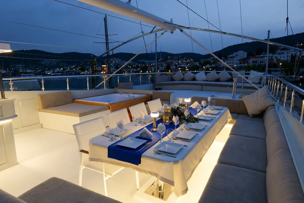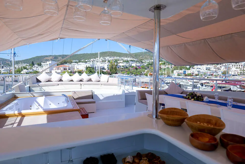 Gulet Freedom offers thoughtfully designed indoor and outdoor spaces for relaxation, dining, and entertainment. Whether lounging on the sun deck, enjoying al fresco meals, or unwinding in the Jacuzzi under the stars, every moment onboard is crafted for comfort and enjoyment.