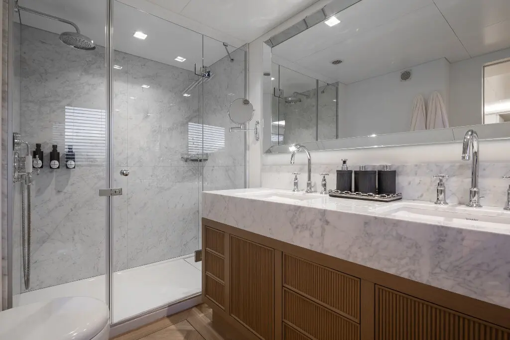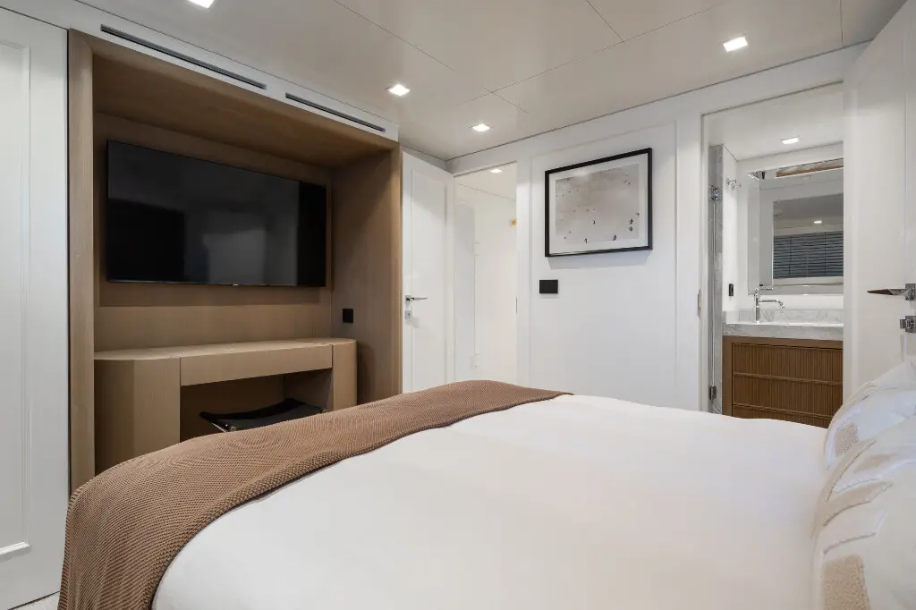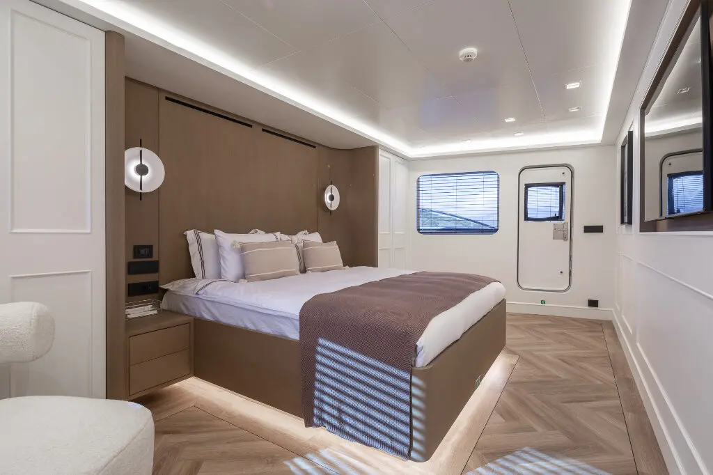 Illusion II features six lavish cabins designed with modern elegance and cutting-edge comfort. These opulent accommodations offer ample space, premium materials, and elegant design, ensuring a serene retreat at sea.